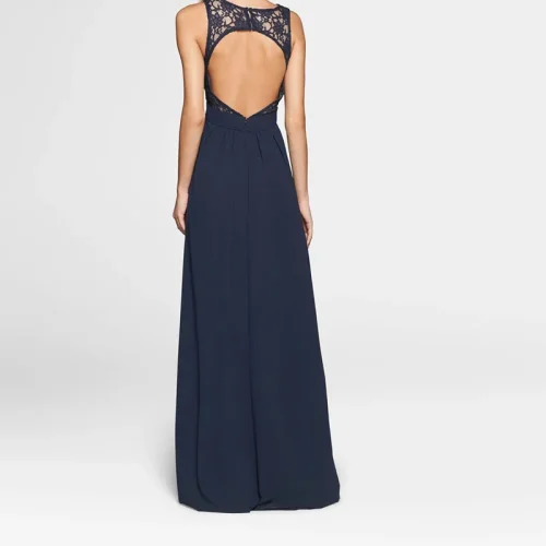 Clothing Manufacturers Women Elegant Black Evening Gown With Exquisite White Floral Applique Bodycon Backless Dress
