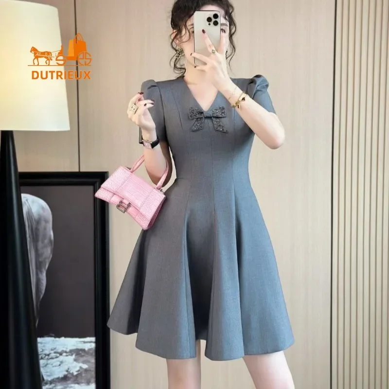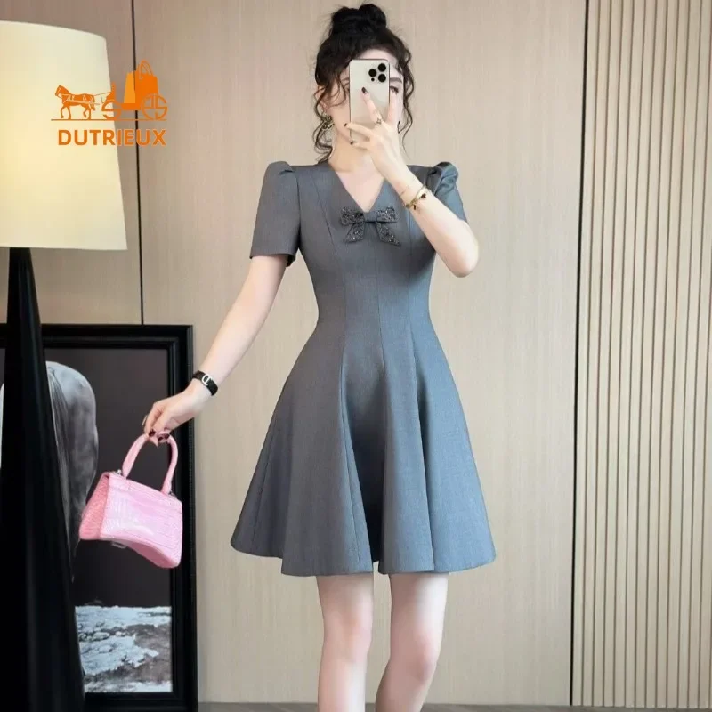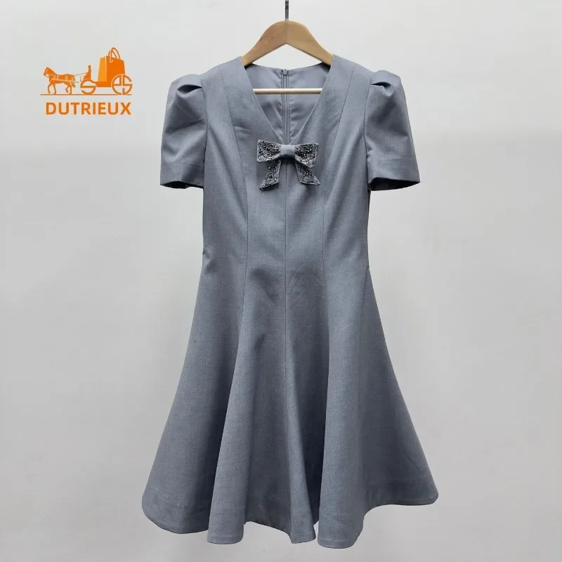French Fashion Elegant Bow Summer Dress for Women, Birthday Party Dinner Dress for Women Mini Dress