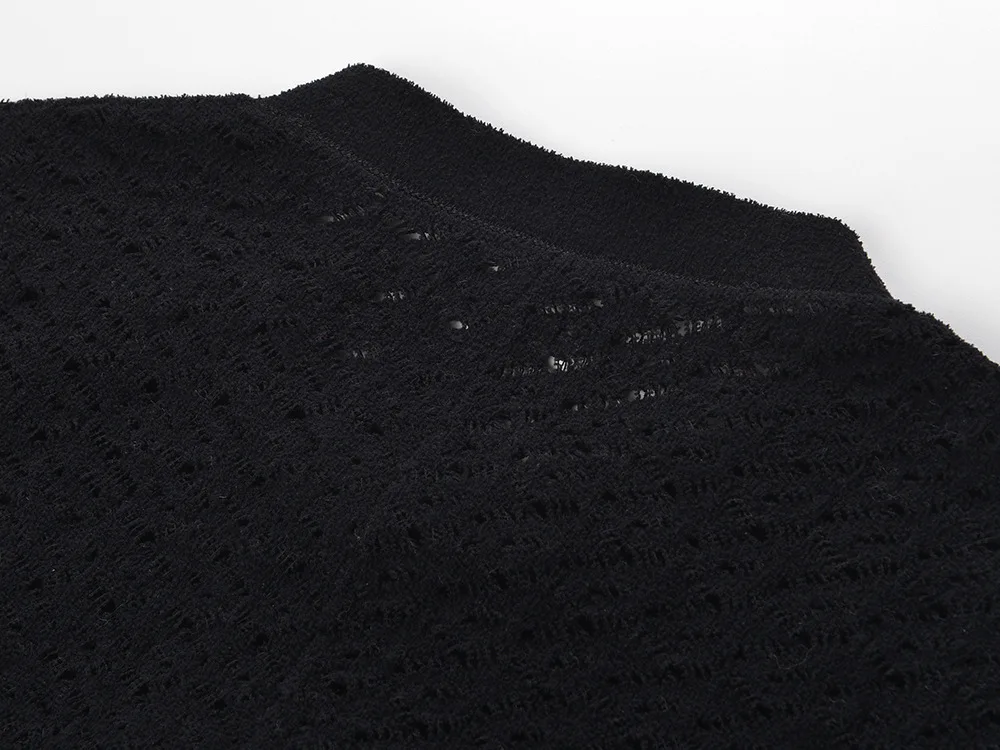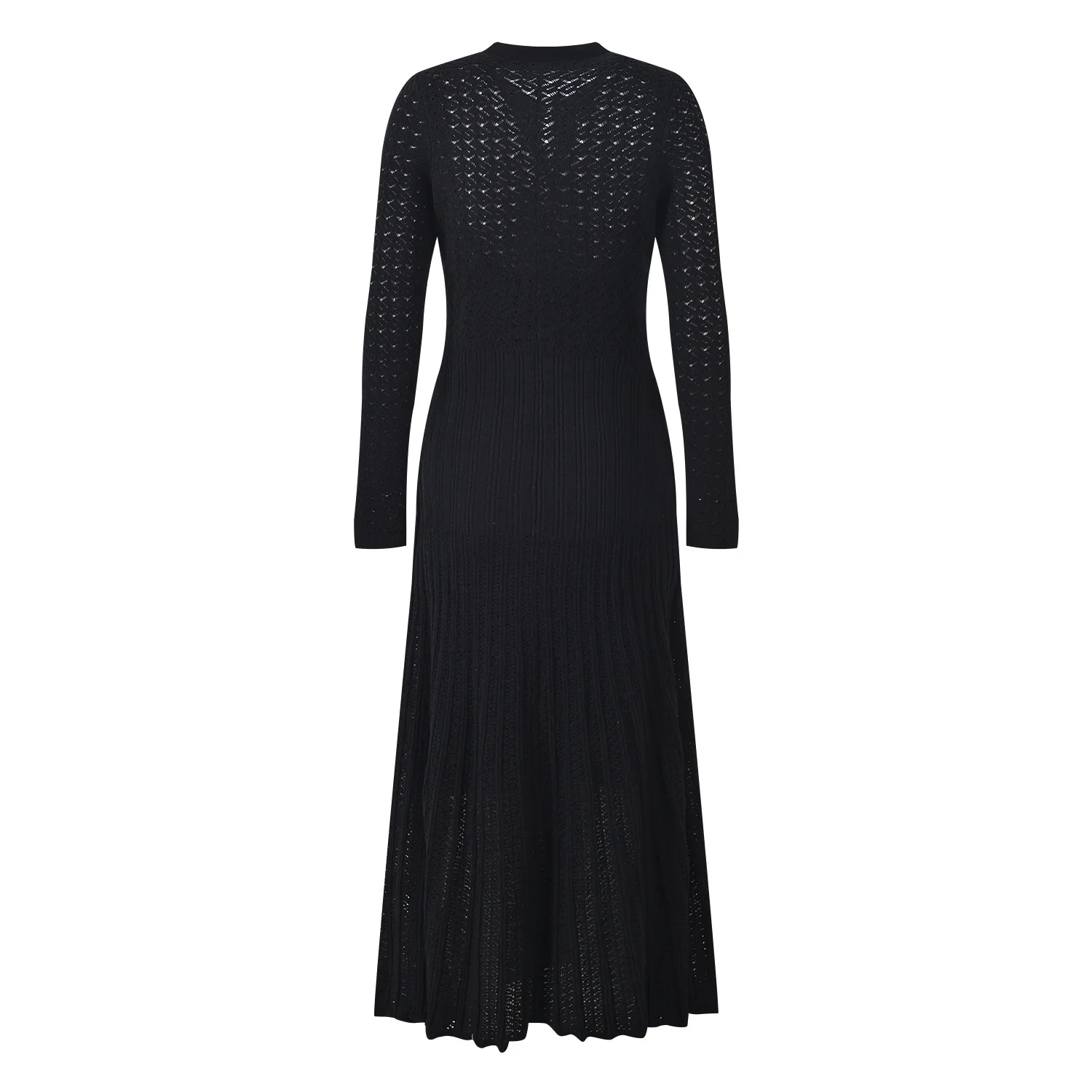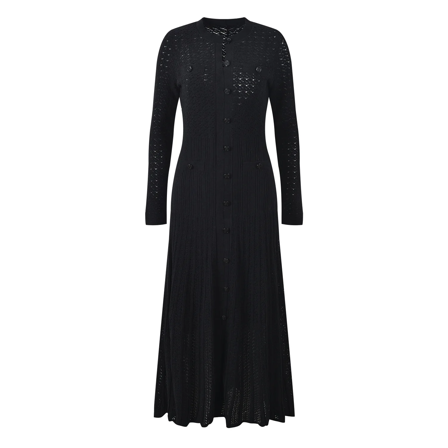 Product Name: French Style Lady O-neck Long Sleeve Casual Wear Women Single-breasted Knits Maxi Solid Black Dress With Slips Inner