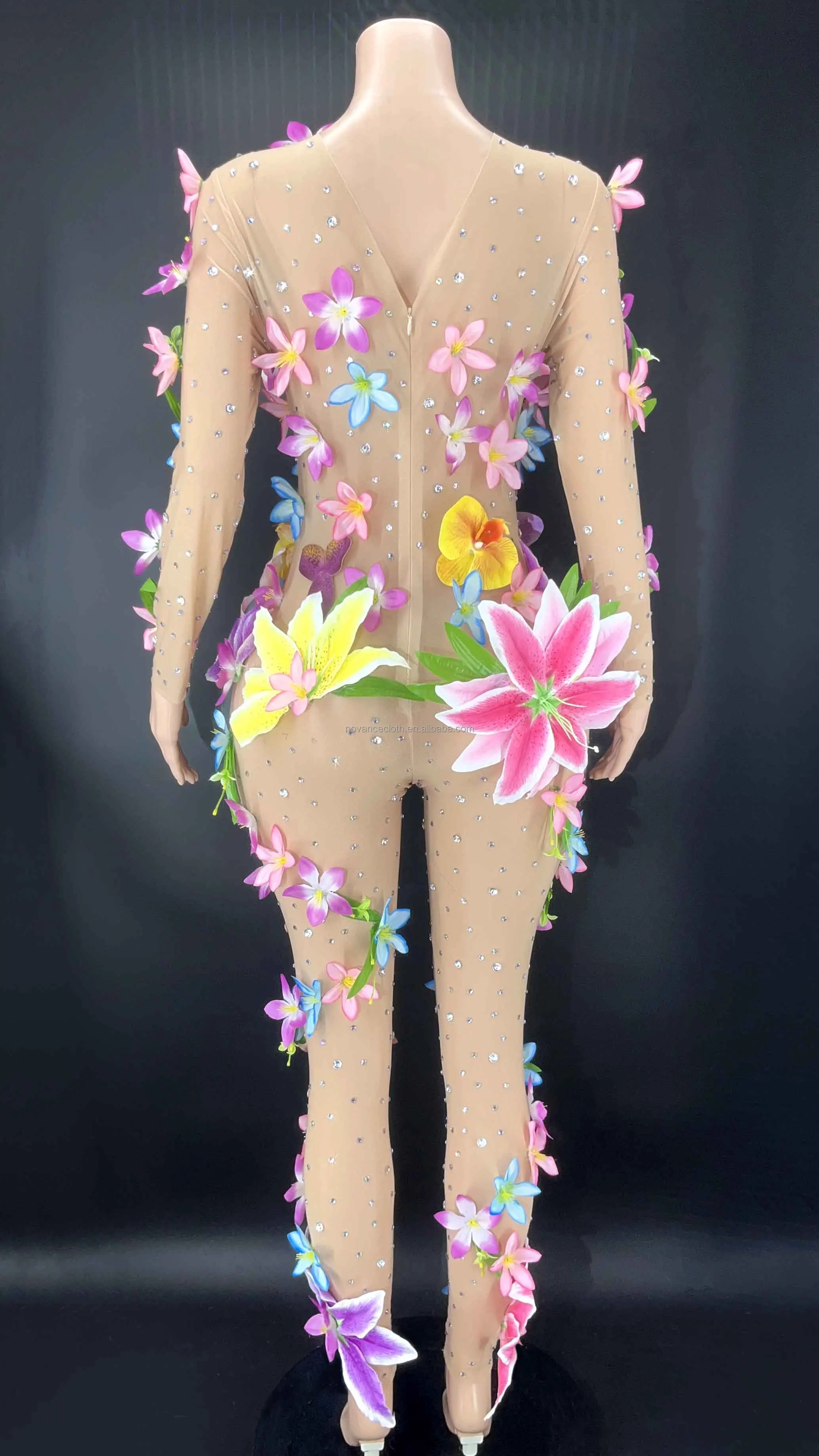 Product Name: Garments Stocks Floral Fabric Diamond Mesh See Through Jumpsuit Beach Dress Elegant Casual Dress Vestidos Largos De Fiesta 2022