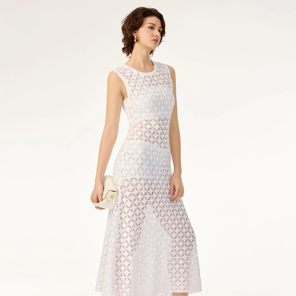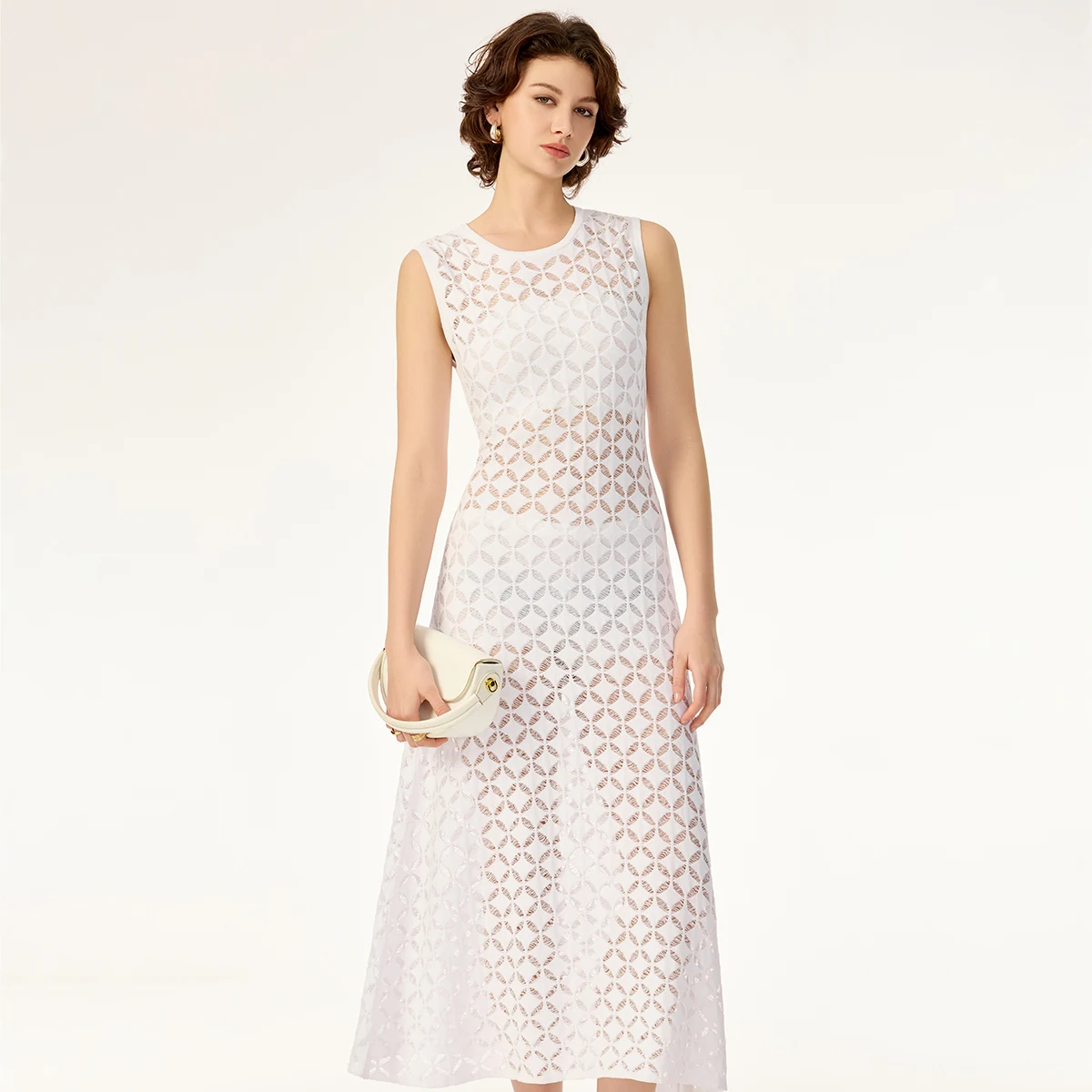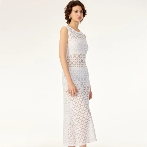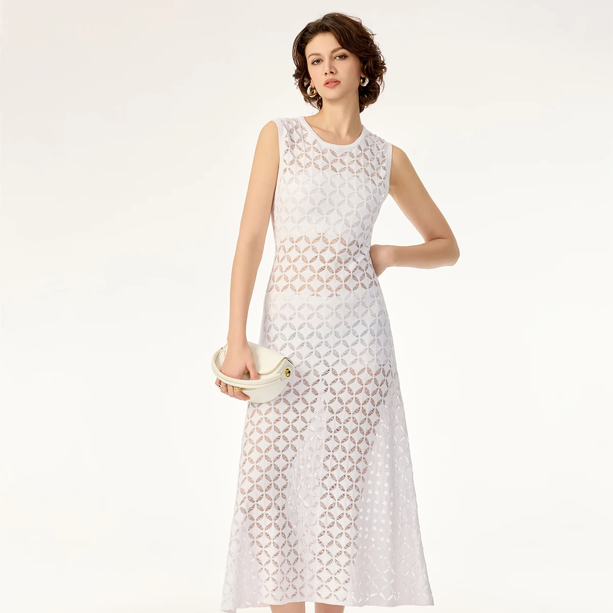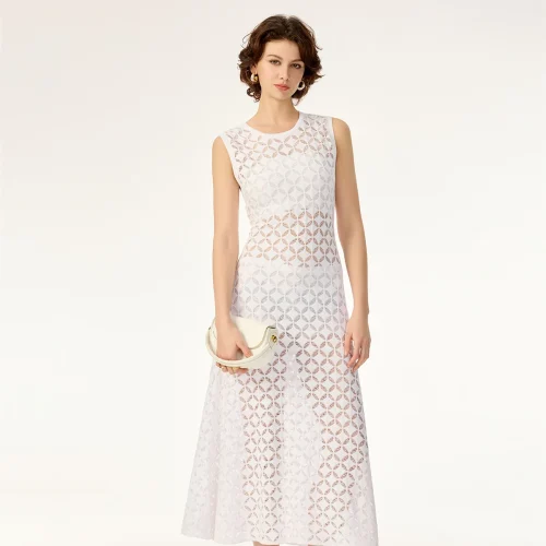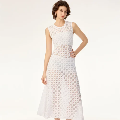 Product Name: Geometric Hollow Pattern Sleeveless Contour Soft Rayon Breathable Drape Summer Cotton Knit Sweater Dress