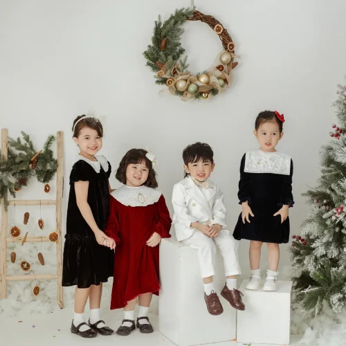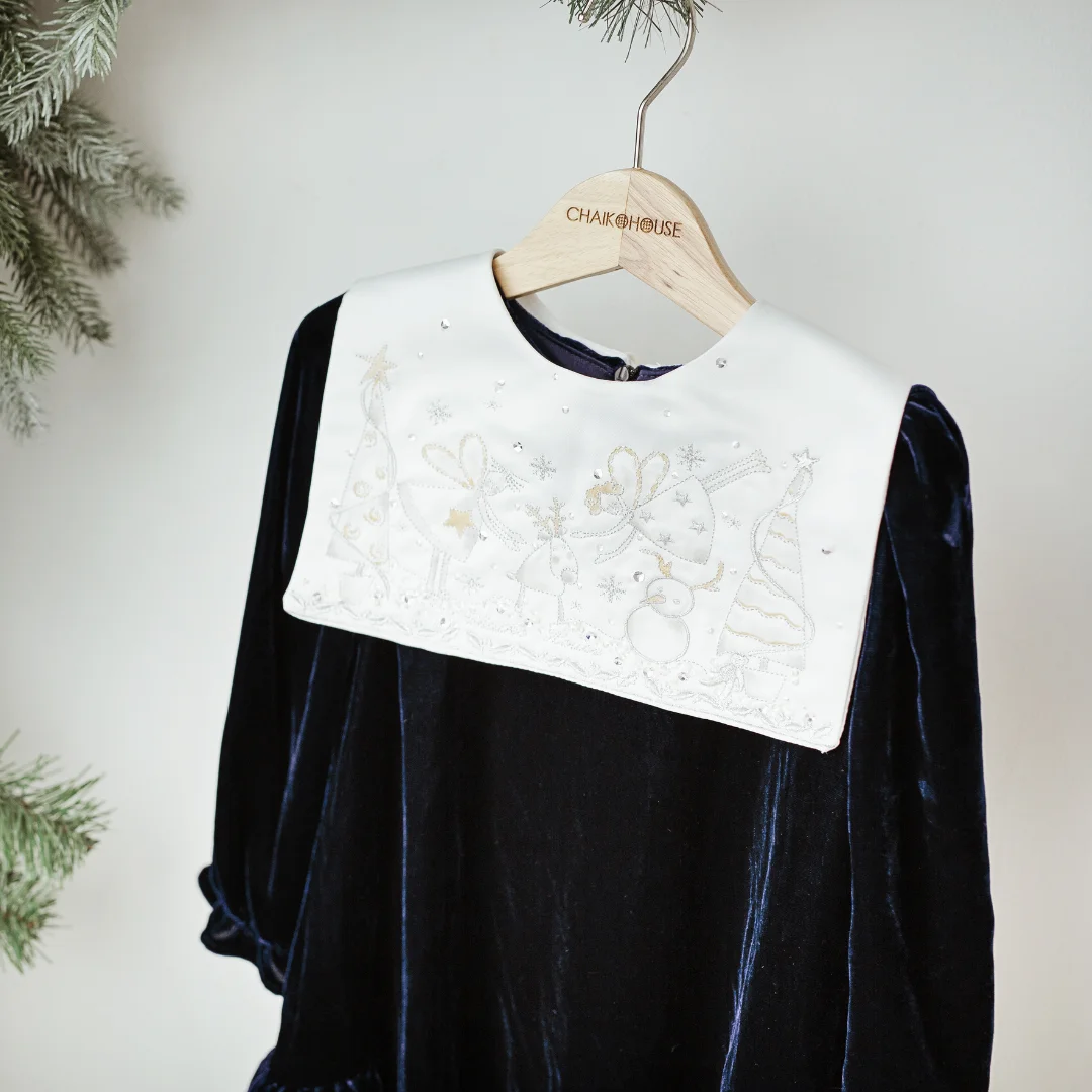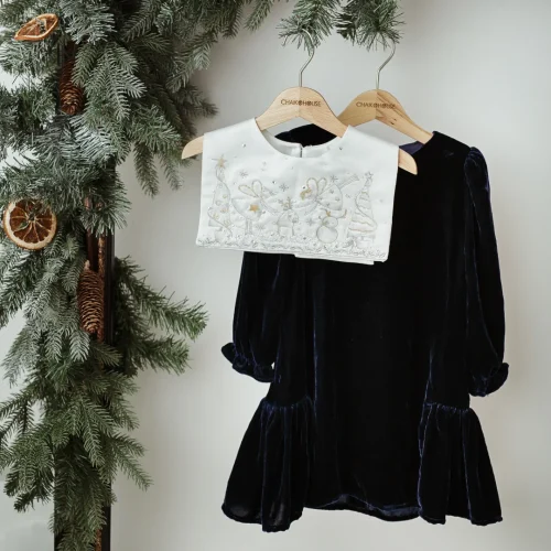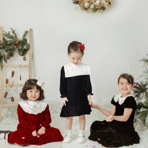 Product Name: Girl Boutique Dresses Royal Velvet Knee-Length with Embroidery Squared Collar Evening Party Children’s Size-Eden ODM Autumn Sets