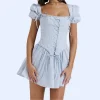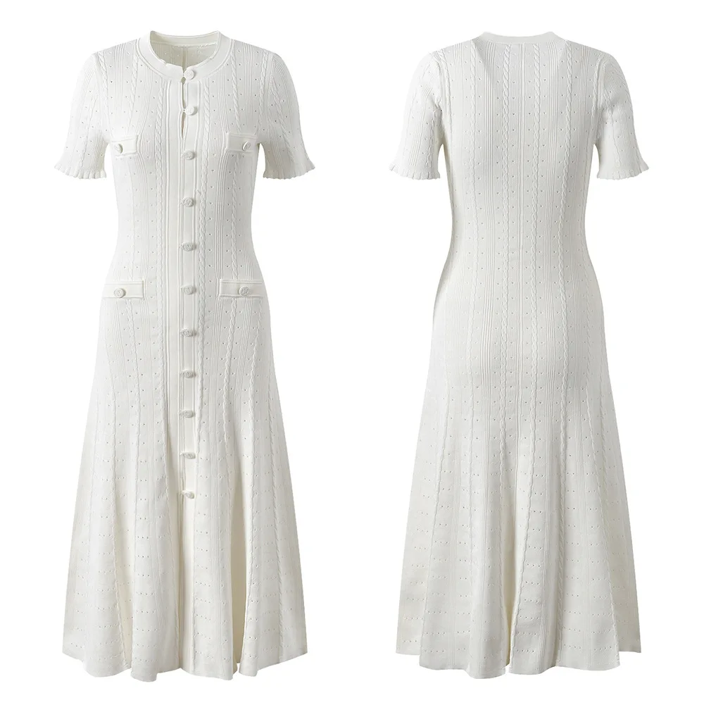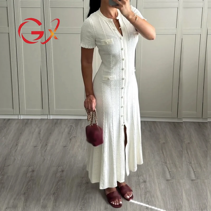 GX46001 Luxury Quality Fashion Short Sleeve Single Breasted Knitted Long Dress Sexy Slim Fit Party Evening Maxi Dresses