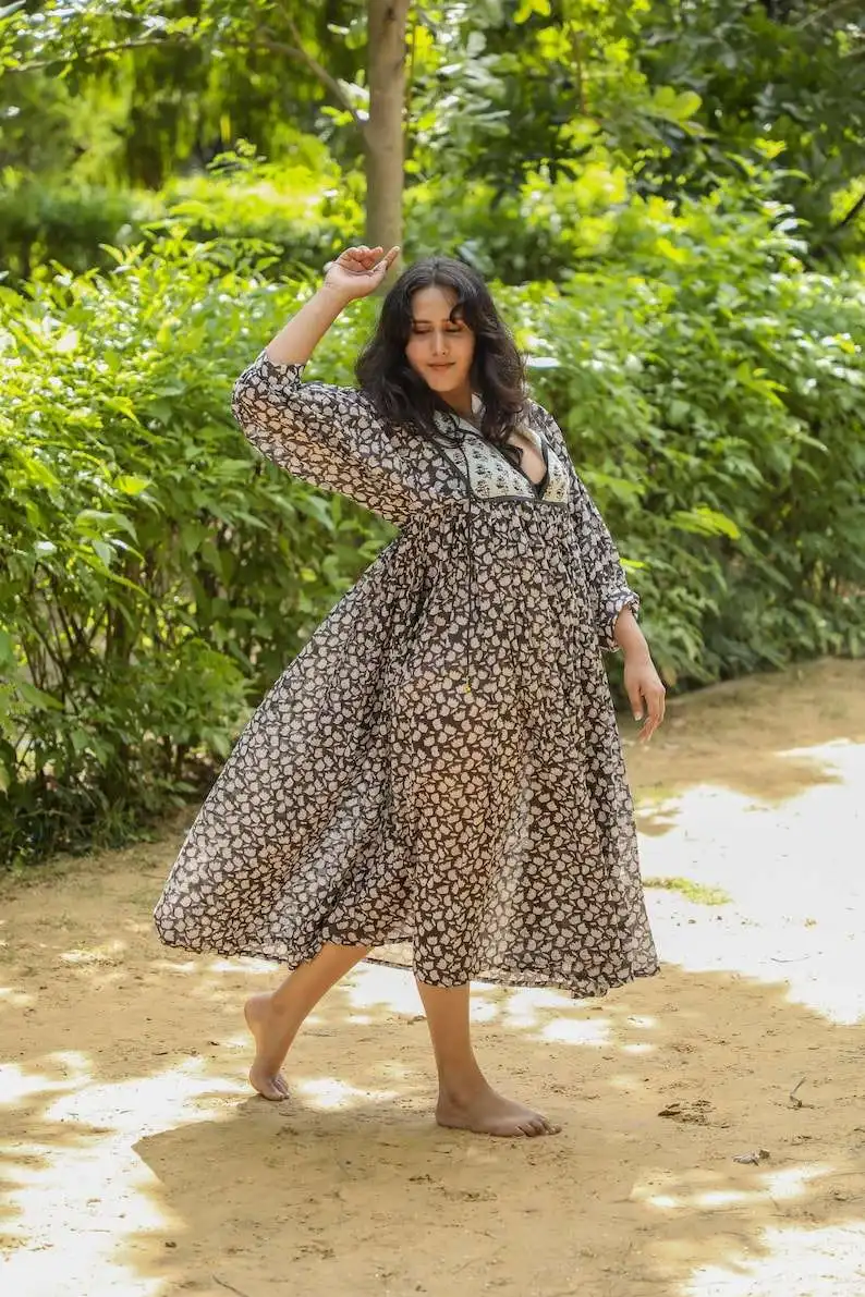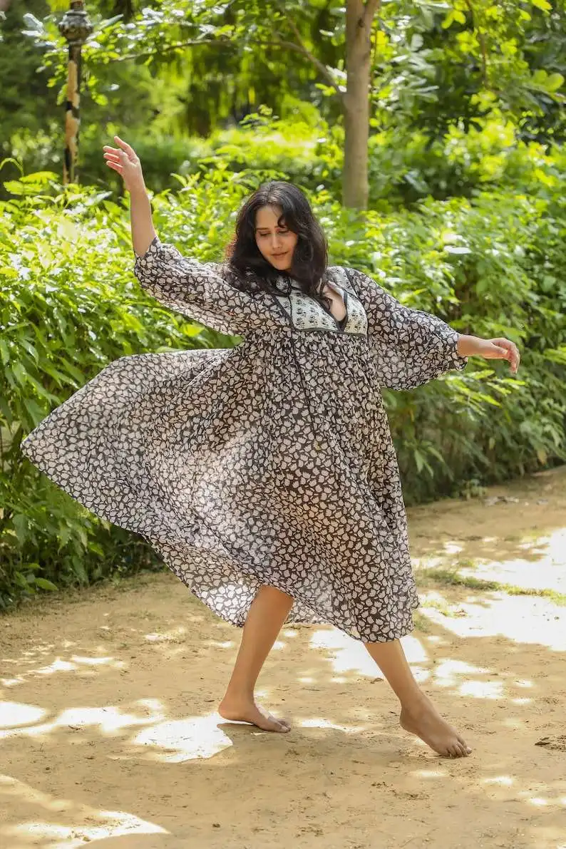 Product Name: Hand Block Printed Cotton Dress Fall Gifts for Her Cotton Handmade Made in India Indian Cotton Hand Block Print Free Size Short
