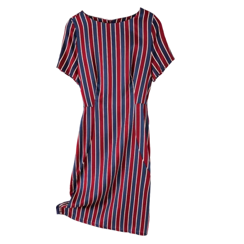 Product Name: Hangzhou Silk Dress for Petite Ladies Sleek Design with round Neck Stripes and Elegant Floral Pattern
