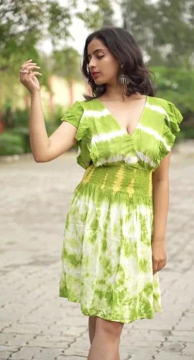 Product Name: High Linen Women’s Casual Wear Short Dress Flowy Tye Dye Lightweight Beach Wear Mini High Waist Daily Pattern izable