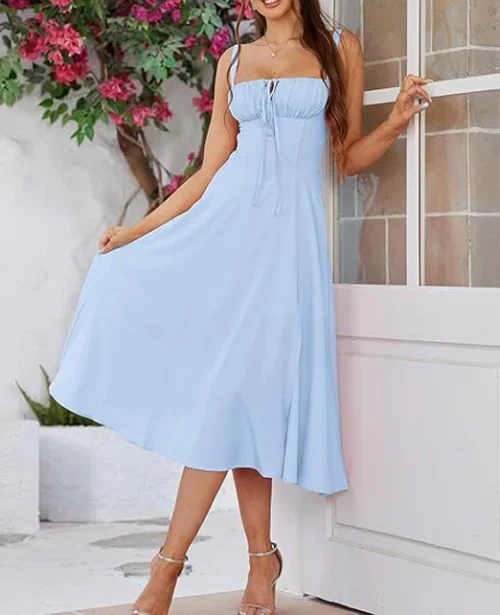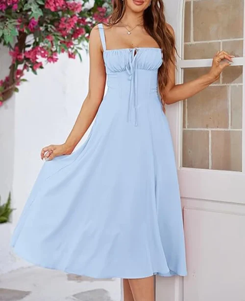 Product Name: High Quality Clothing Manufacturers Women Summer Floral Midi Corset Dress Cotton Slit Lace up Dresses a Line Casual Sundress