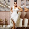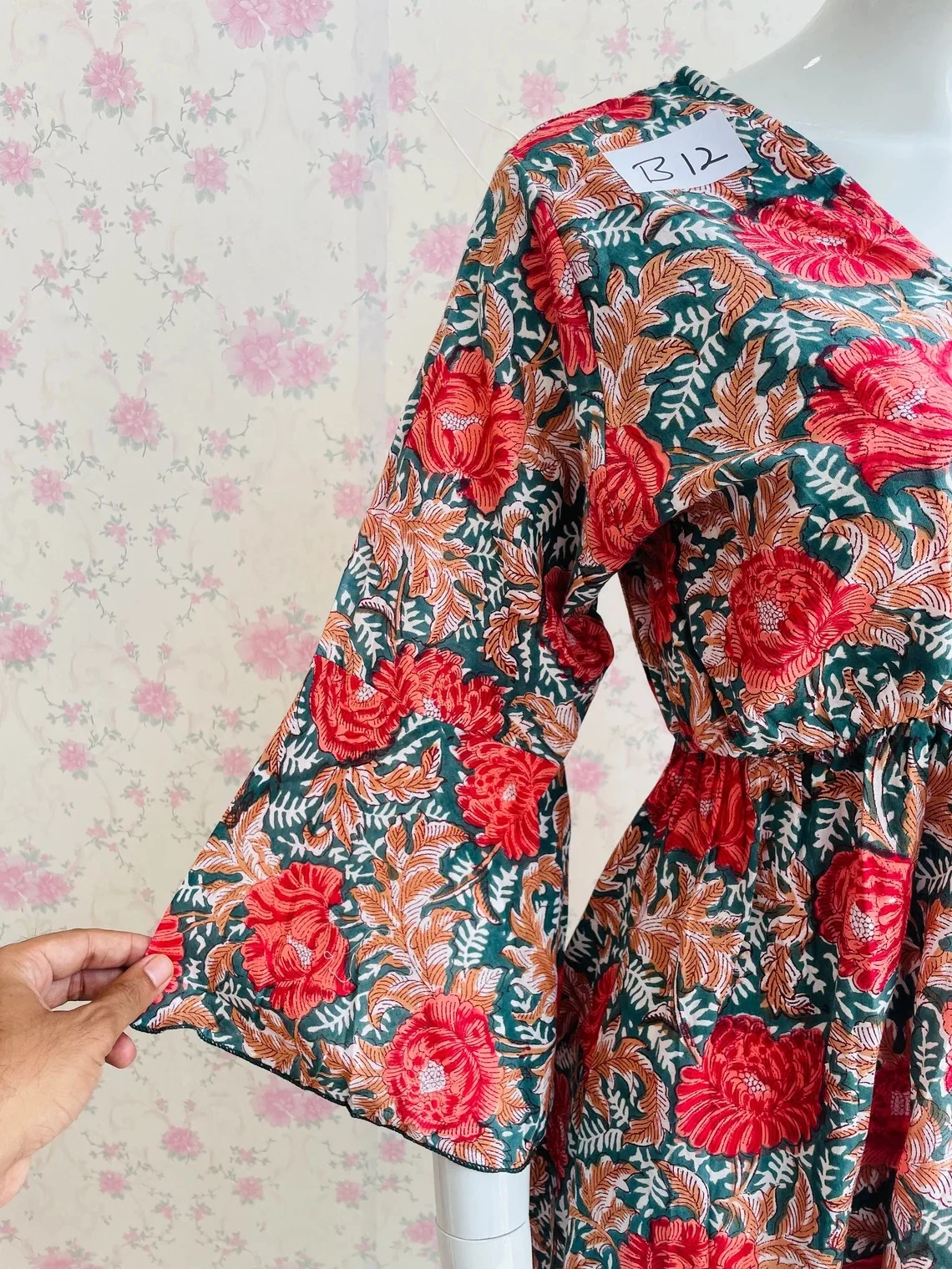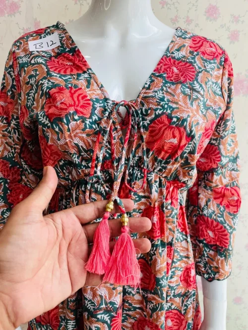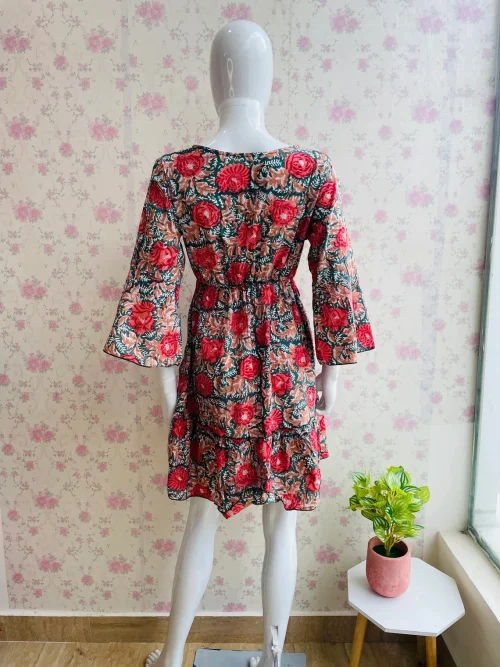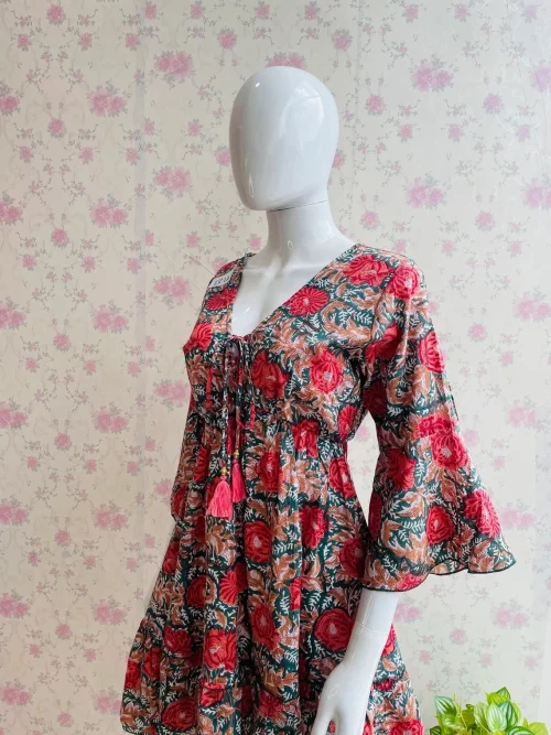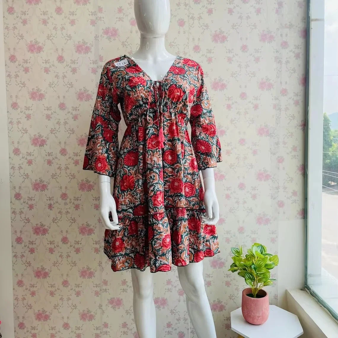 High Quality Cotton V-Neck Party Dress for Women Short Block Print Breathable and Patchwork Design for Autumn Season