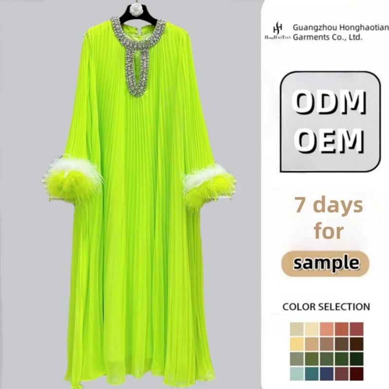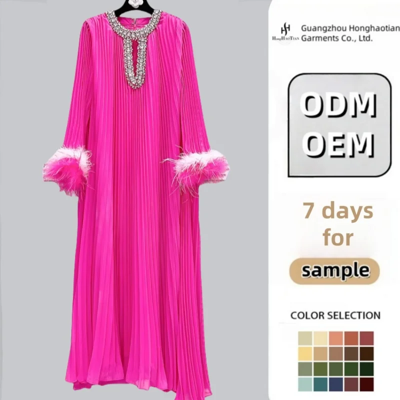 Product Name: High Quality Diamond O-Collar Maxi Dresses Female Solid Nail Drill Ostrich Hair Sleeve Evening Gown Direct Sales