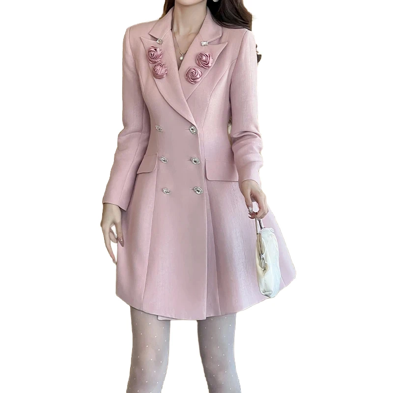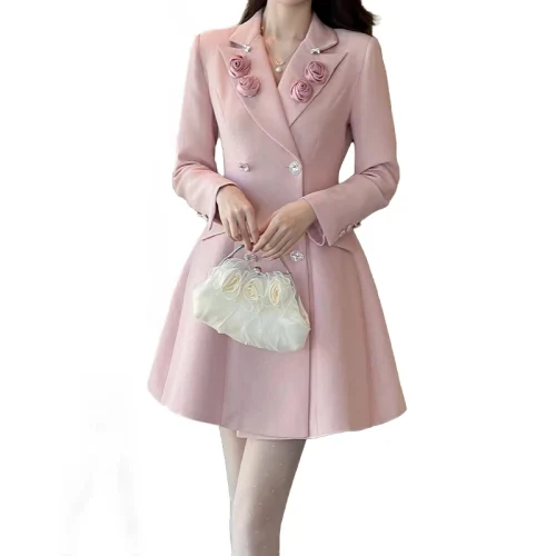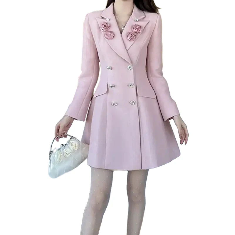 Product Name: High Quality izable French Pink Satin Blazer for Women New Arrival Breathable Solid Pattern Woven Perfect Sundress
