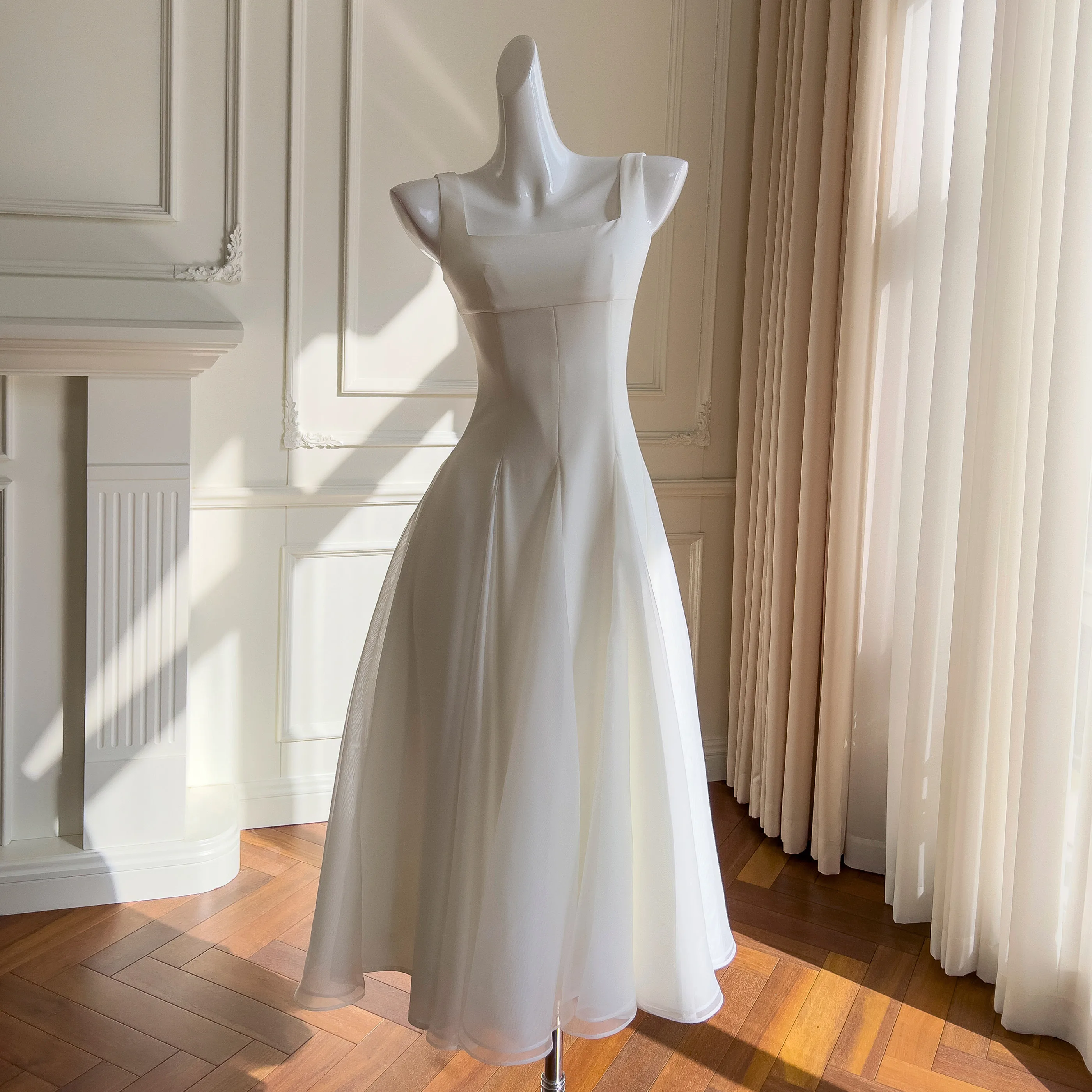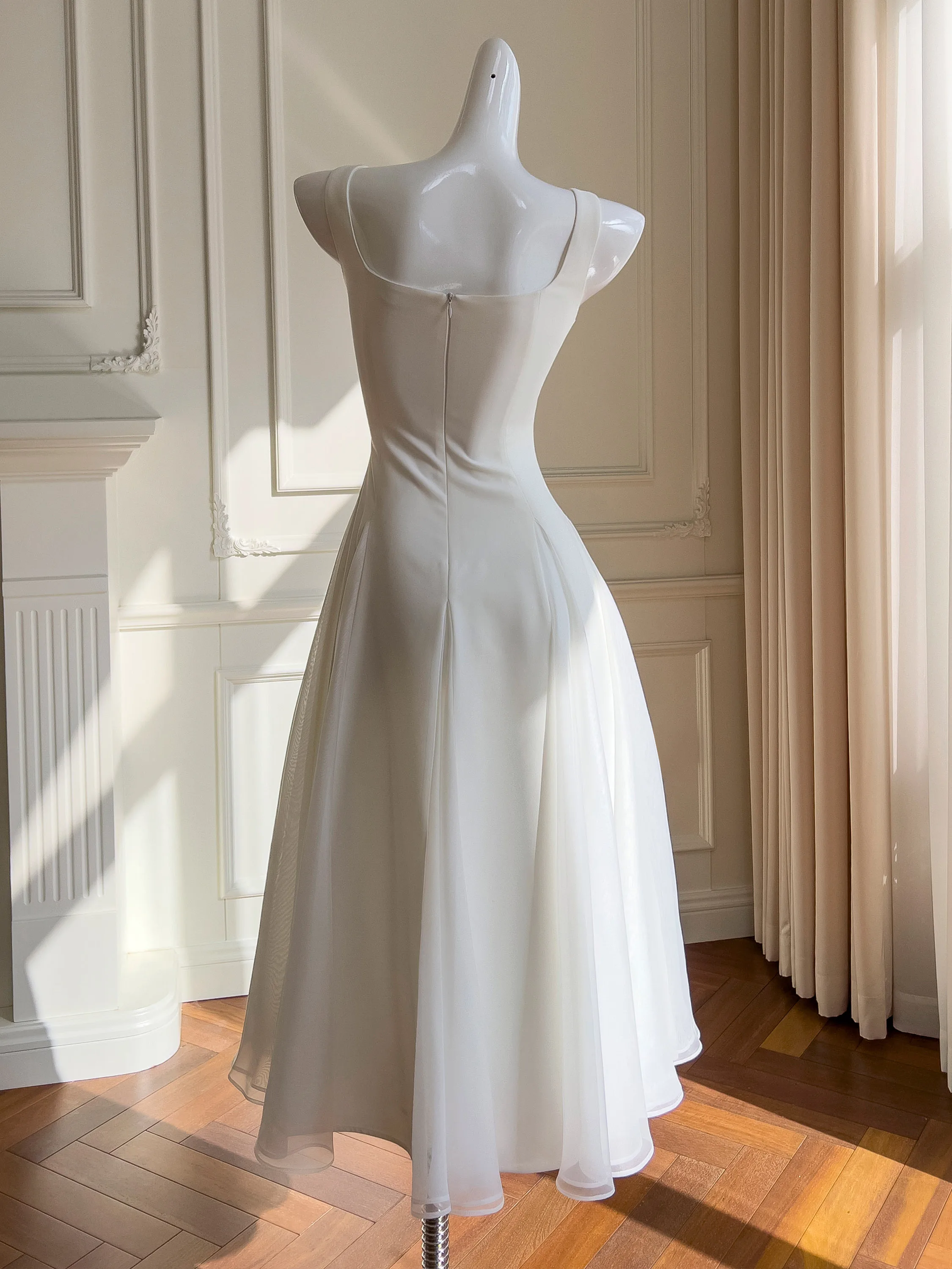 Product Name: High Quality Lady Temperament Simple Waist Long White Dress Summer New Sexy Suspender Big Swing Slimming Dress