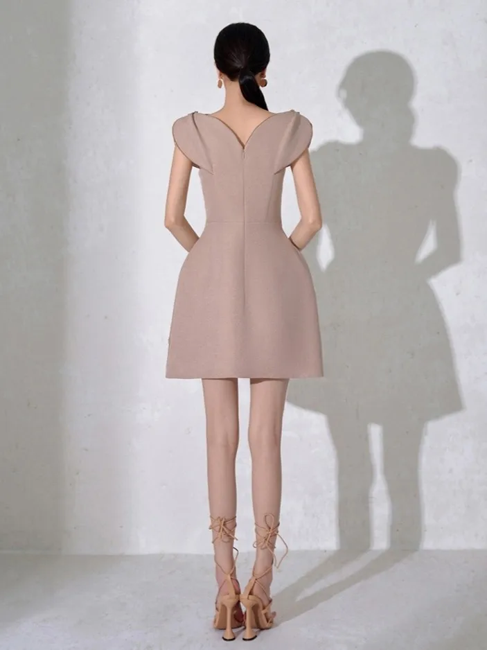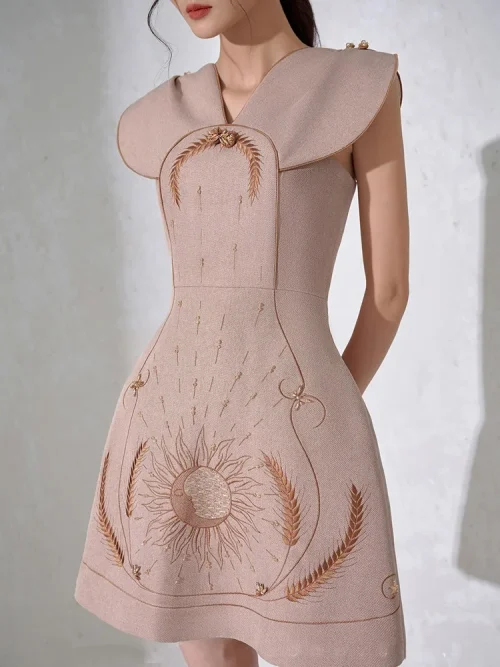 Product Name: High Quality Vietnamese Style Floral Short Party Dress Elegant and Fashionable with Natural Waistline Dress