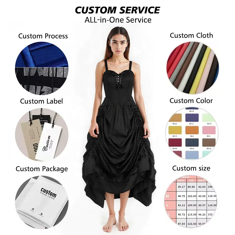 Product Name: High Waist Ball Skirt Evening Gowns for Women Dress Long Solid Color Dress Gothic Smocked Sundress Summer Dresses 2024