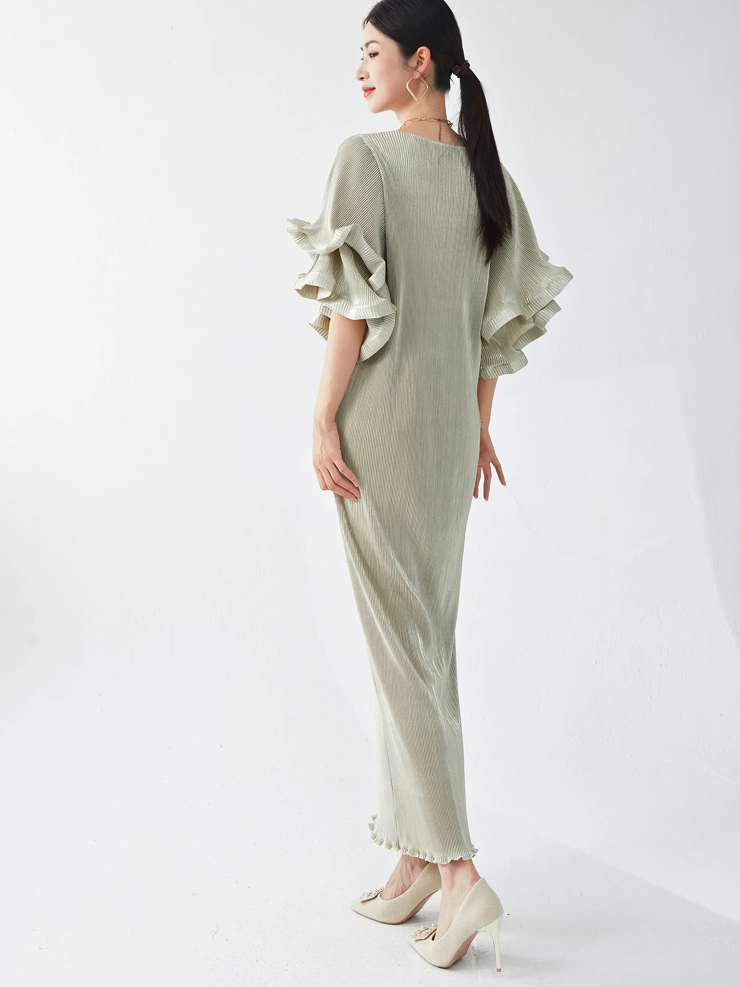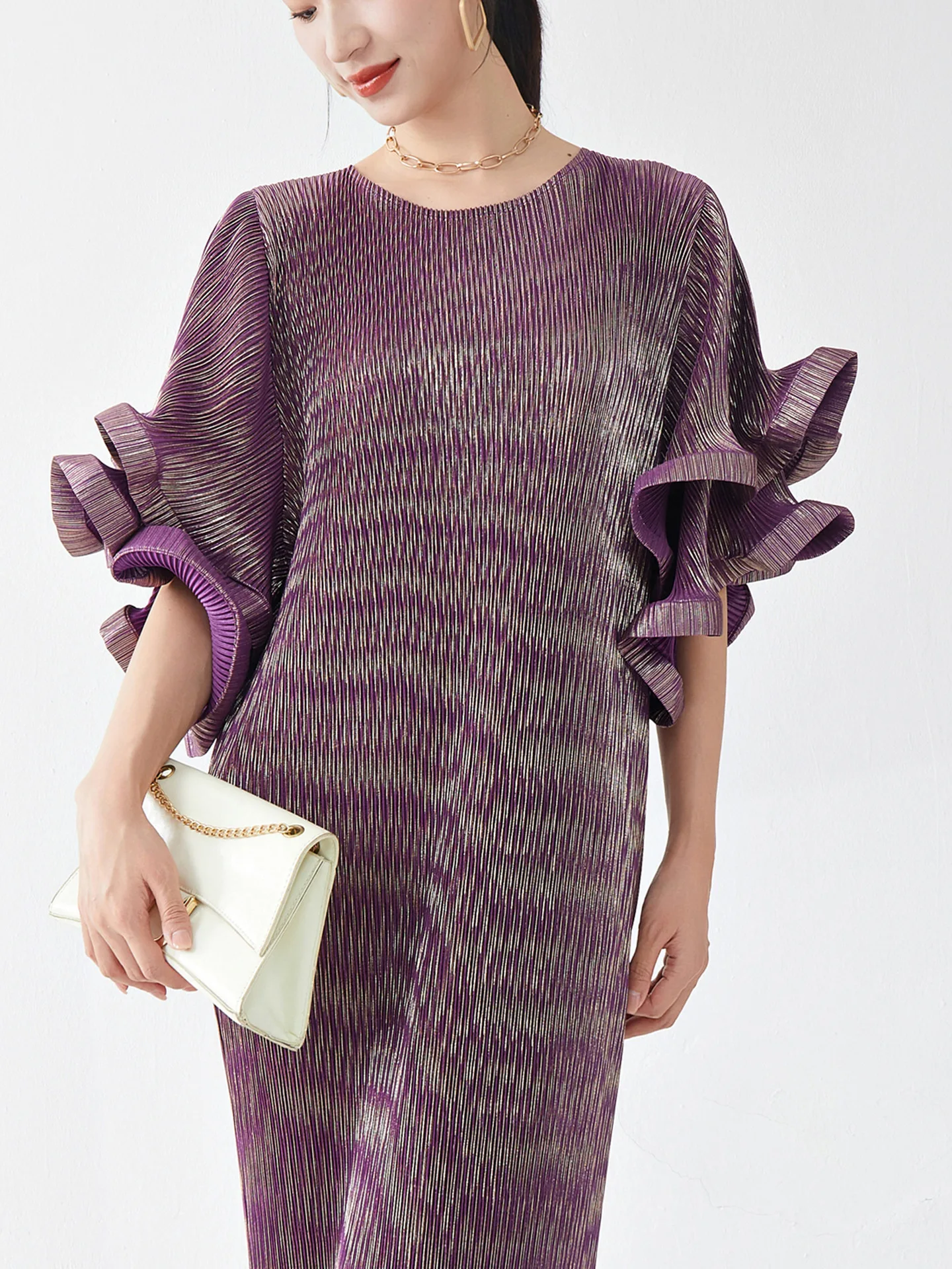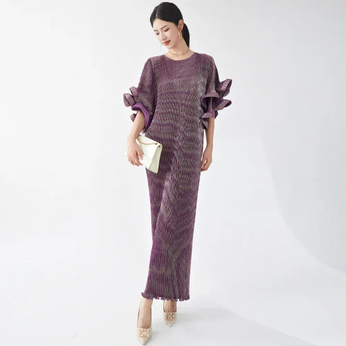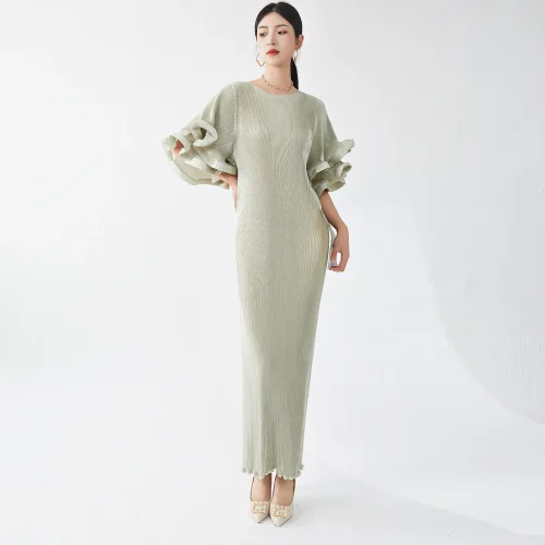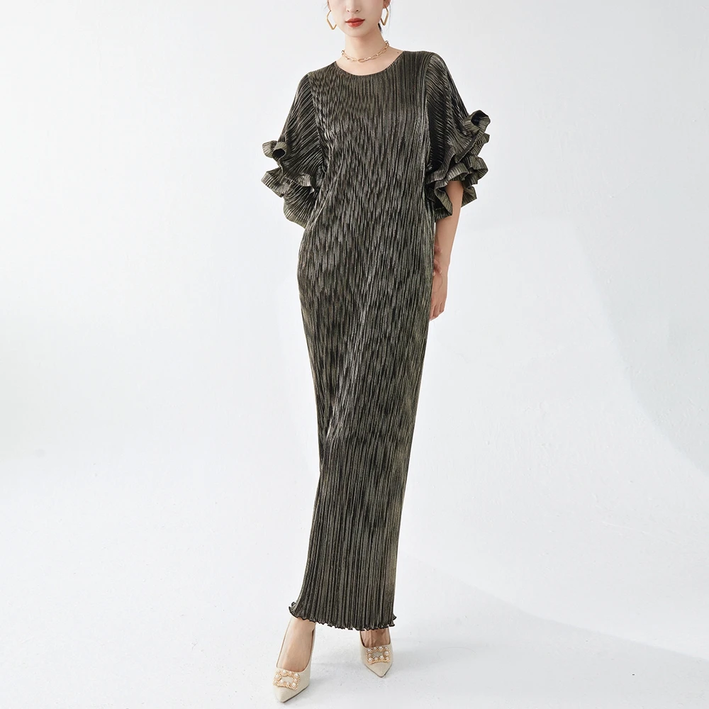 Product Name: High-end Design Loose Dresses Women’s Round Neck Trumpet Sleeve Loose Plus Size Casual Women’s Clothing Elegant Party Long Dress