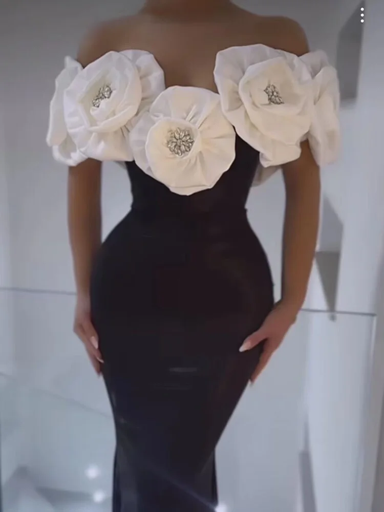 Product Name: High-End Quality Choice Women’s Flower Bandage Midi Dress Stylish Solid Pattern Elegant Light Evening Occasions Order Your