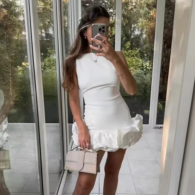 Product Name: Holiday Lady Evening Party Vestidos Women Elegant Ruffled Hem Folds Short Sundress Chic Y2K Sleeveless Backless Mini Dress