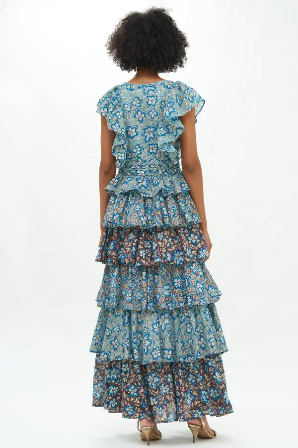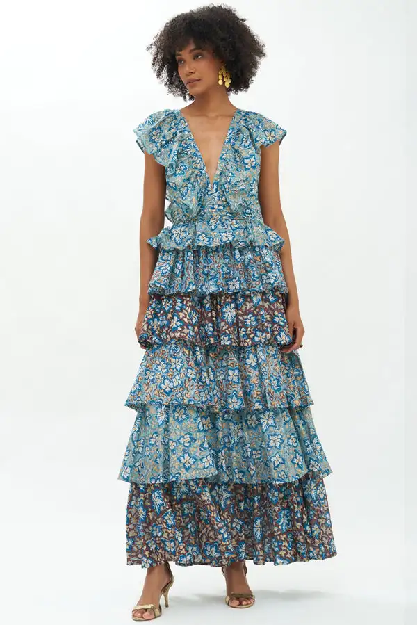 Product Name: Holiday Wear Collection Latest Women Dress Deep V-Neck Sexy Women Resort Wear Ruffle Dress Floral Printed Women Long Maxi Dress