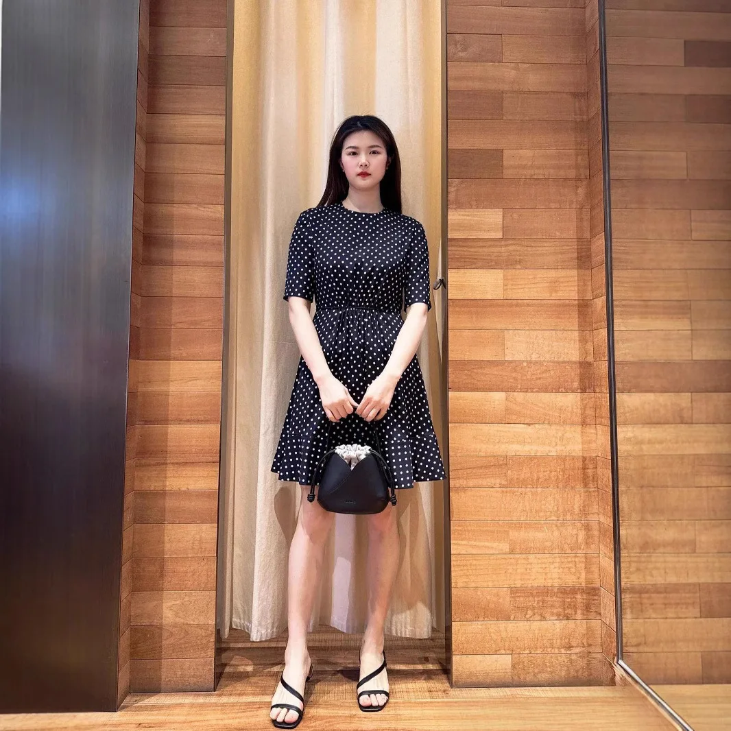 Product Name: IC2025 Spring Summer New Satin Casual Dresses Elegant Mid-Length Crepe Elastic Waist izable Brand Solid