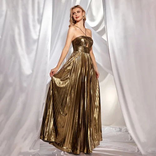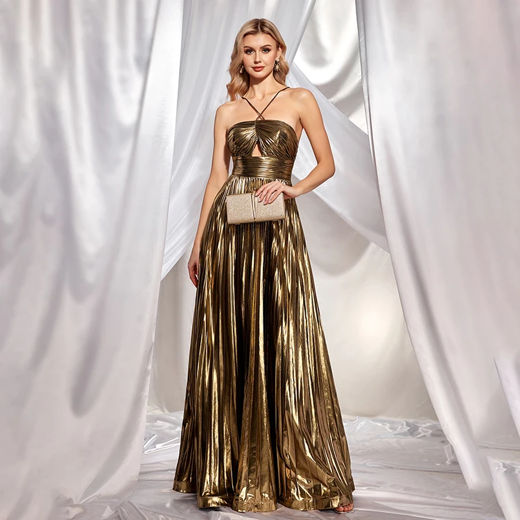 Product Name: IMPEREAL 2024 Women’s Gold A-Shaped Evening Dress Polyester Floor-Length Gradient for Garden Ground Party Prom