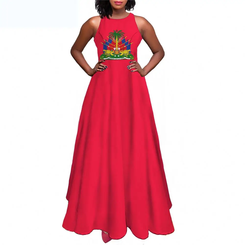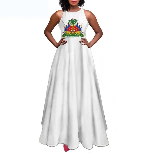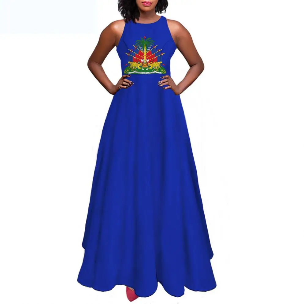 Product Name: in Bulk Women’s Long Dresses Fashion Haiti Flag Design Sleeveless Sexy Party Dress for Girls Female Elegant Sundress