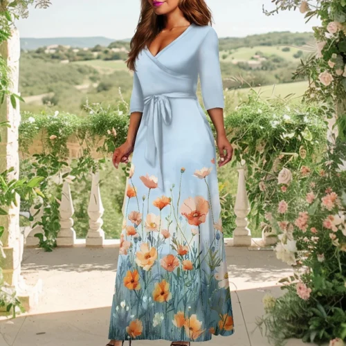 Product Name: izable High-grade Deep V-neck Purple Sunflower Formal Elegant Long Party Dresses