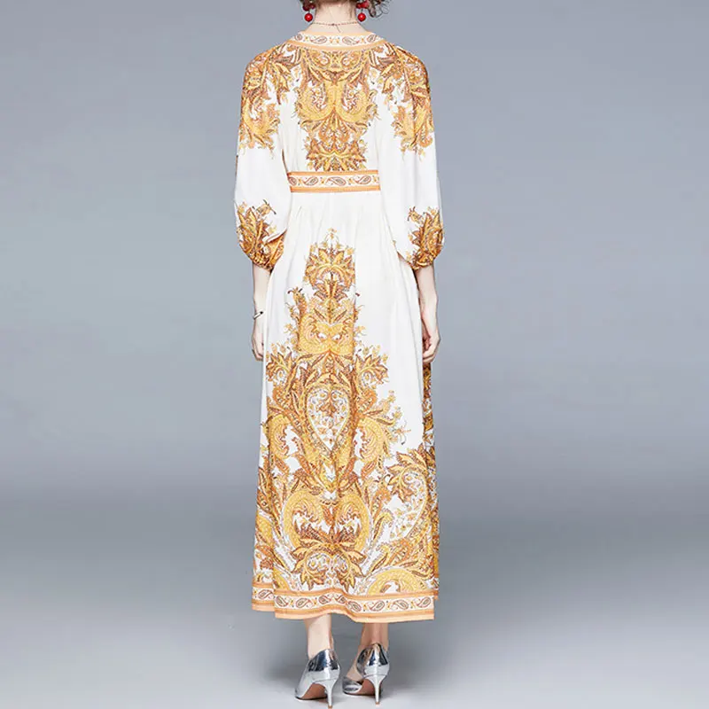 Product Name: ization Summer Linen Midi Luxury Sundress Abstract Floral Print Woman Casual Long Dress