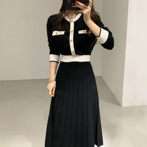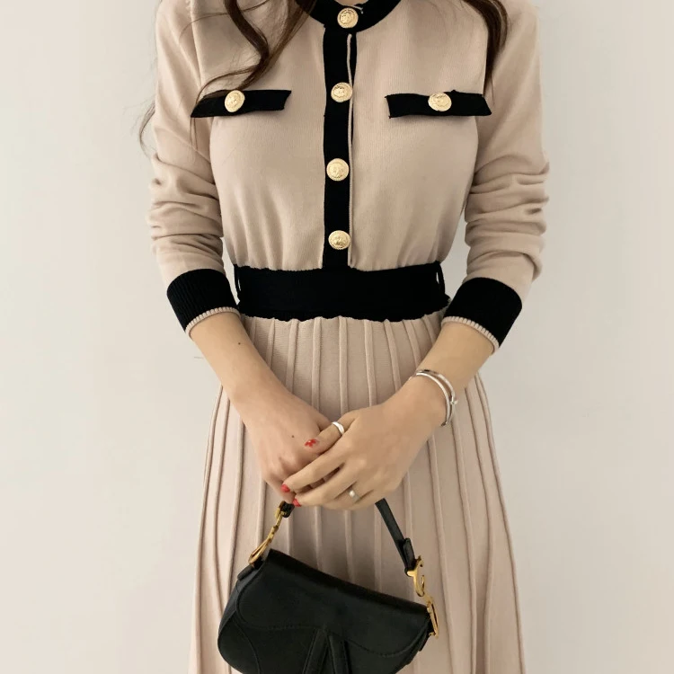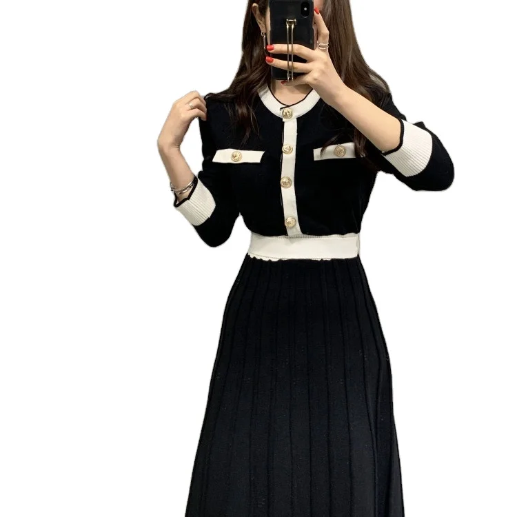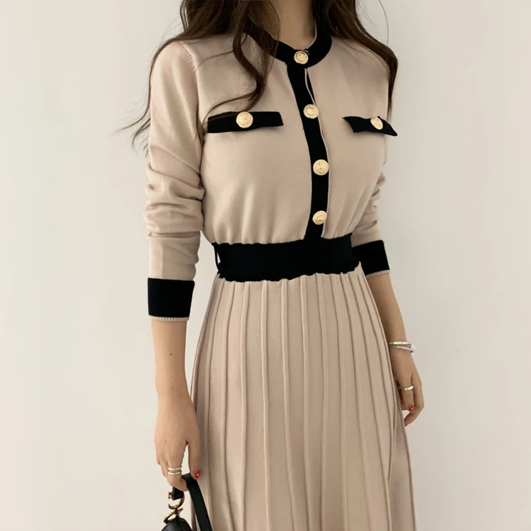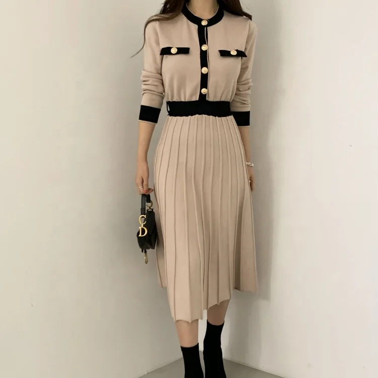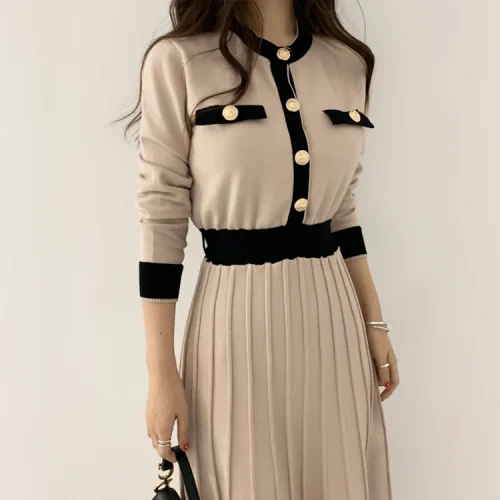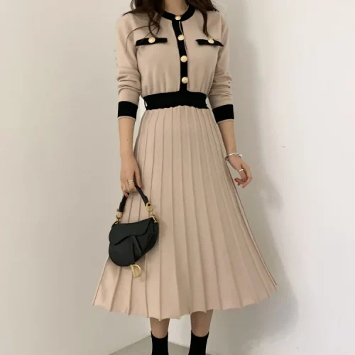 Product Name: Knitwear Manufacturers Elegant Women’s Knit Slim a Line High Waist Pleated Dress Women Soft Ladies Long Sweater Dress
