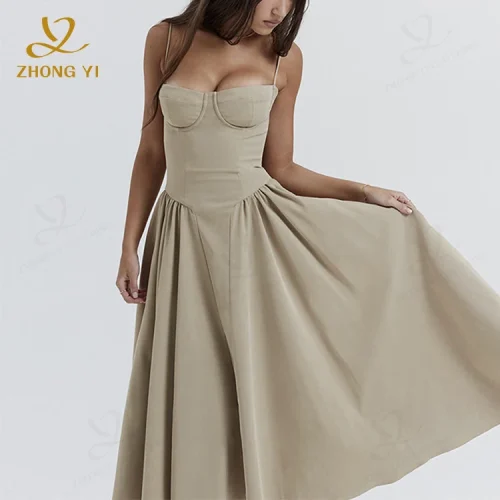 Lady Elegant Slim Backless Dress for Women Fashion Ladies Suspender Dresses Summer Female Party Evening Robes Vestidos