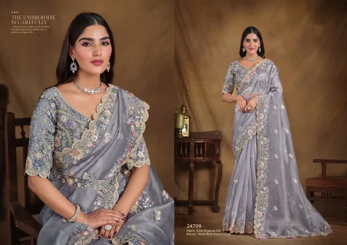 Latest Dressing Trending Beautiful Dress Attached Saree Blouse With Embroidery Work Manufacturer From India at Whole Sale Rate
