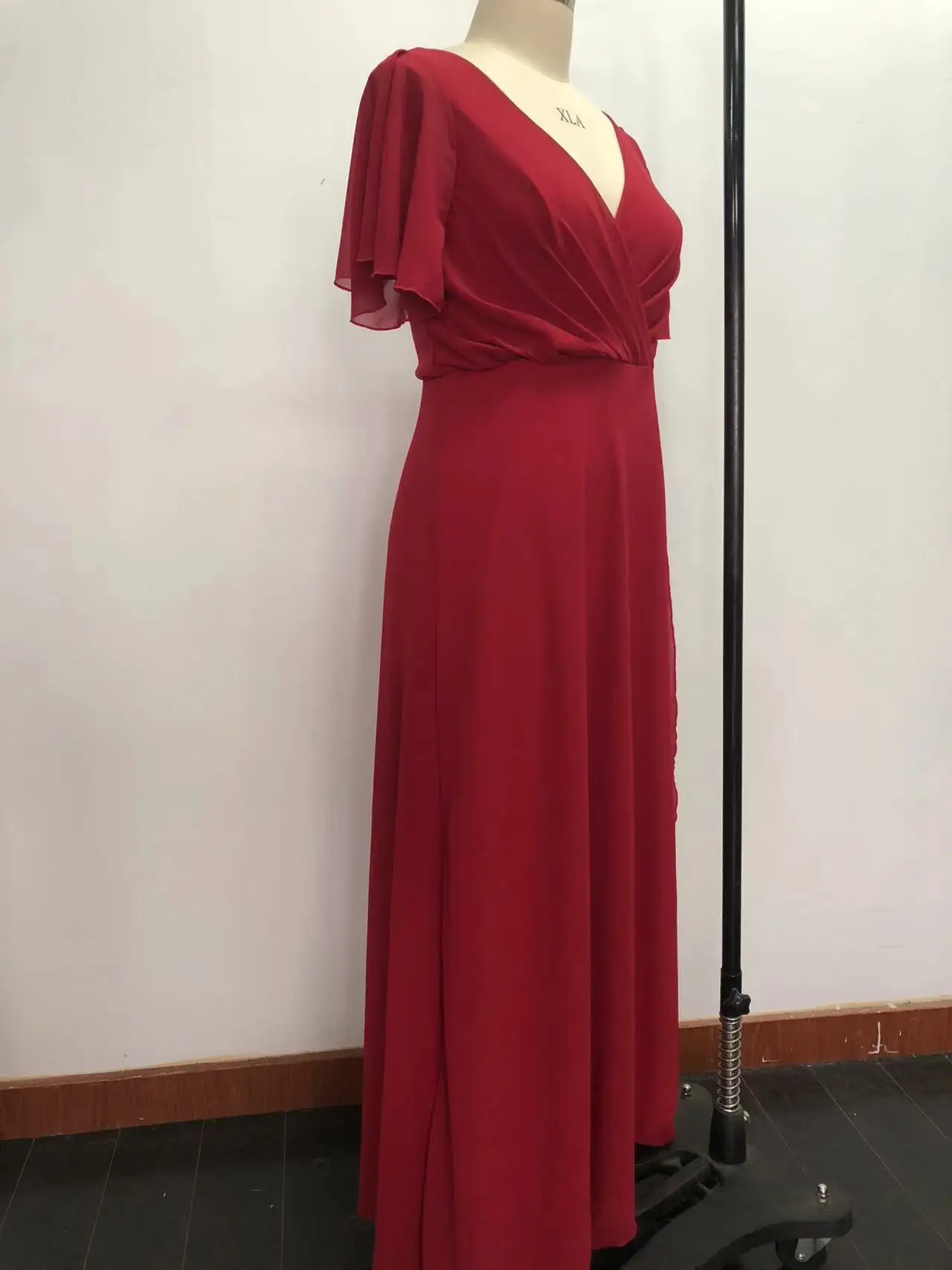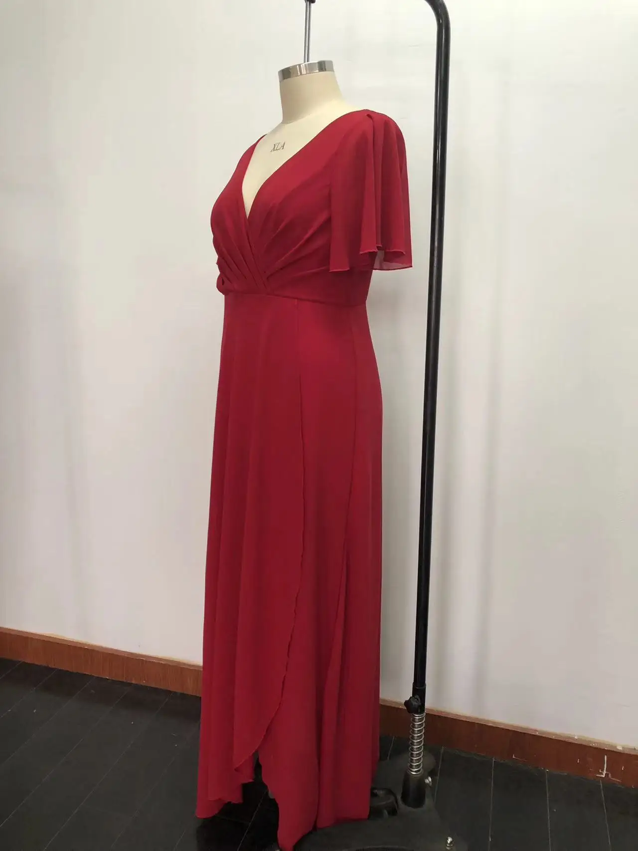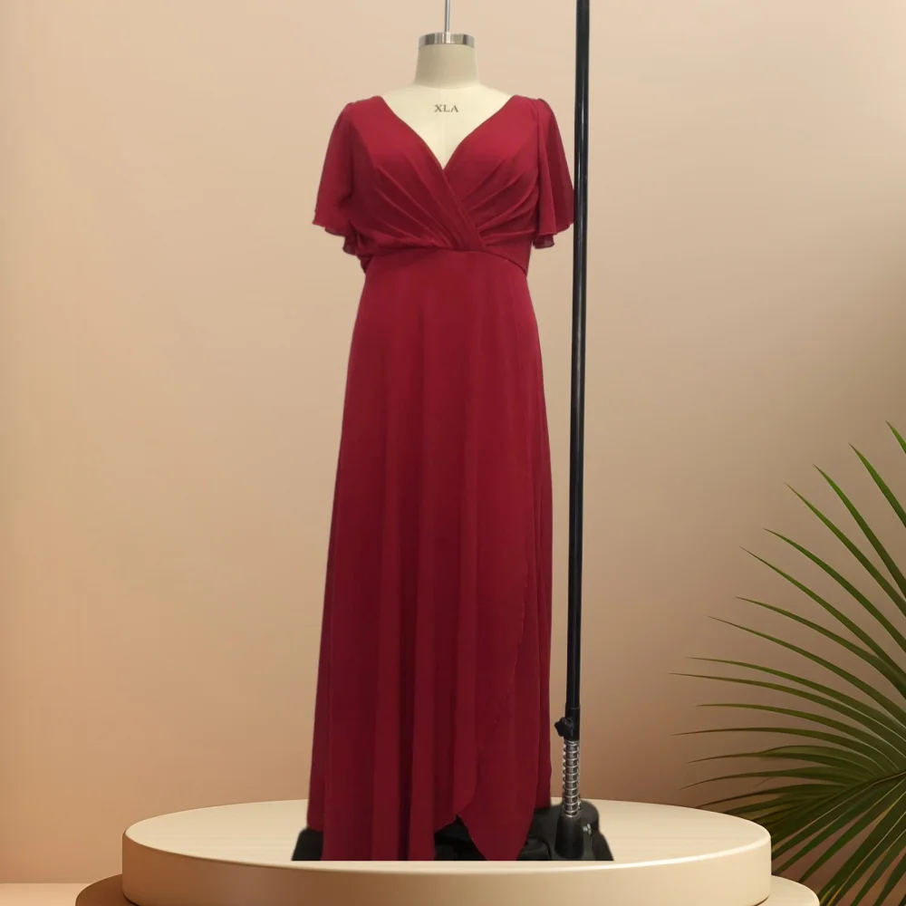 Product Name: Latest izable Red Floor-Length Evening Party Dresses for Women Fitted Chiffon Lace Ruffles Decoration Plus Size Option