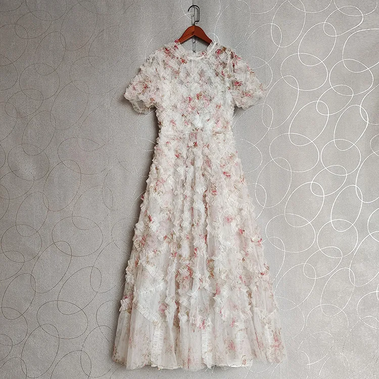 Product Name: LE2544 High Quality Lace Dresses Elegant Socialite Vacation Gauze Dress Europe and the United States Embroidery Evening Gown