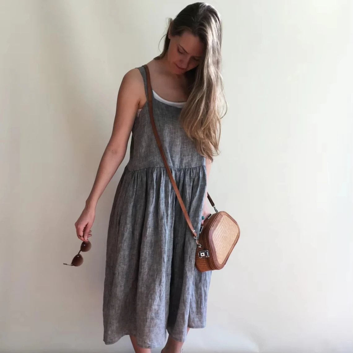 Product Name: Linen Dress, Pinafore Dress, Sleeveless Maxi Dress, Pinafore Maxi Dress, Linen Maxi Dress, Plus Size Sundress, Linen Dress