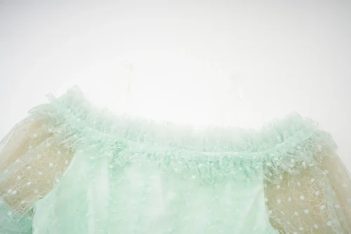 Long Gowns 2025 Spring Fashion Style Women Sexy Slash Neck Polka Dot Print Long Sleeve Tulle Mesh Long Green Party Evening Dress