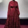 Long Gowns 2025 Spring Fashion Style Women Sexy Slash Neck Polka Dot Print Long Sleeve Tulle Mesh Long Green Party Evening Dress