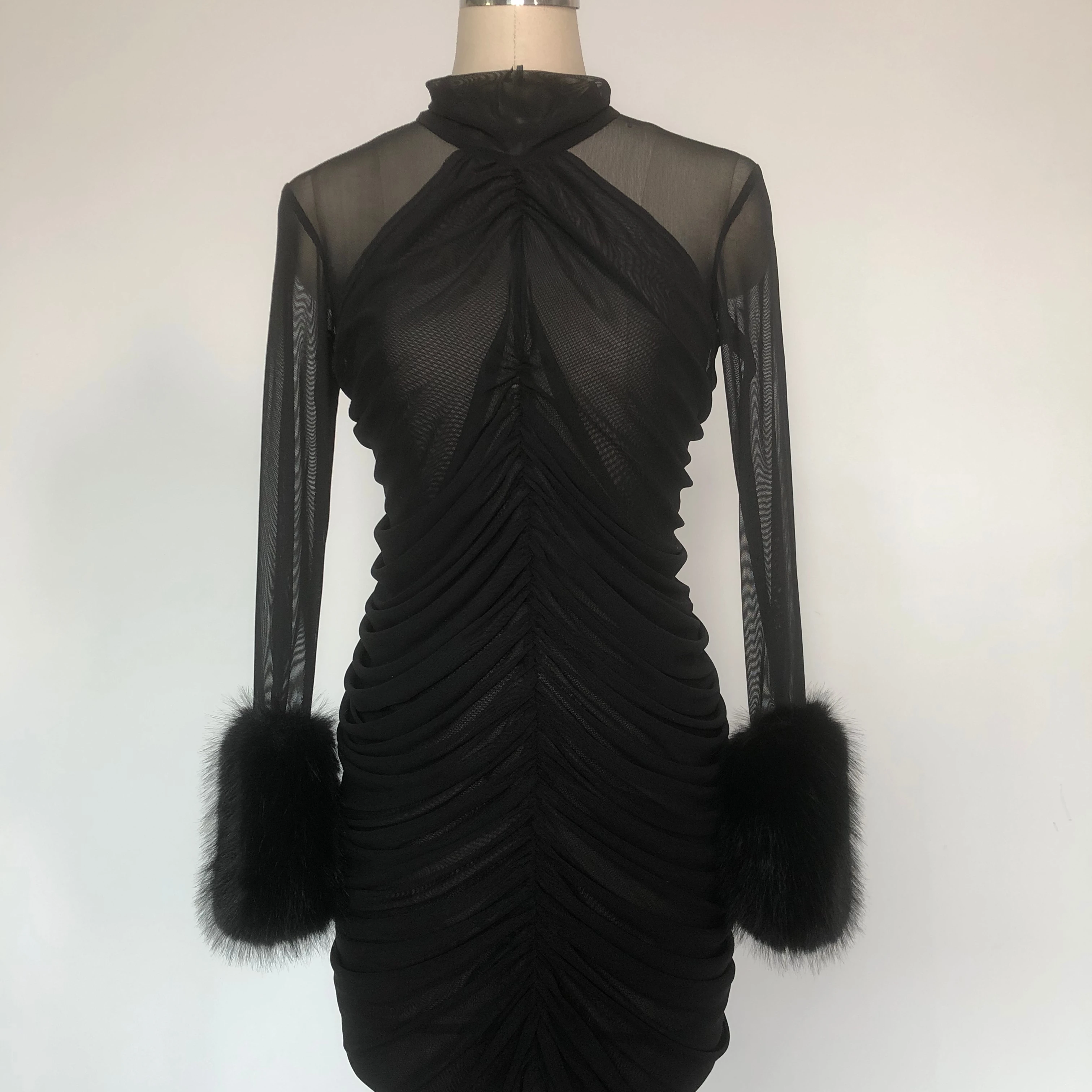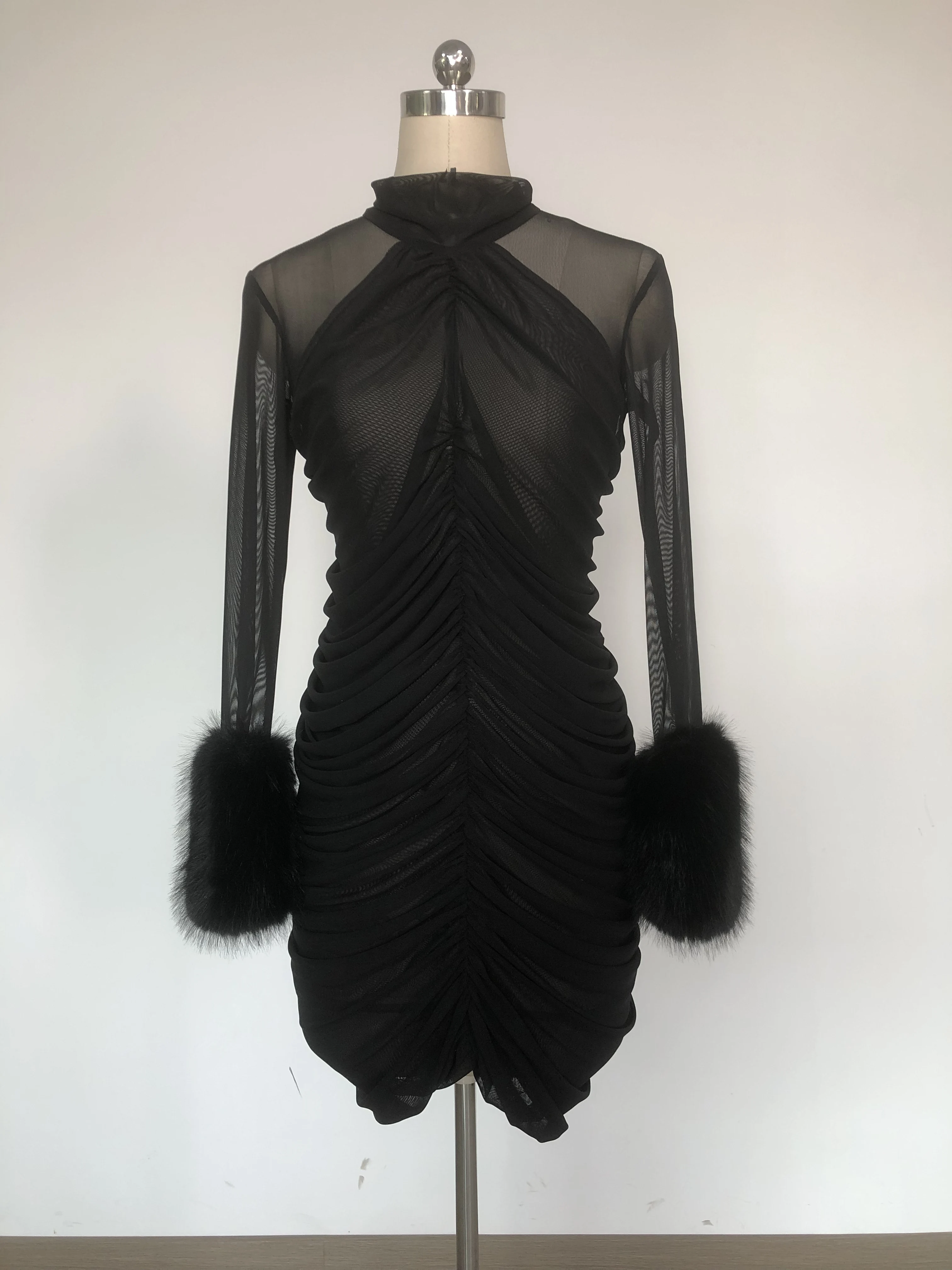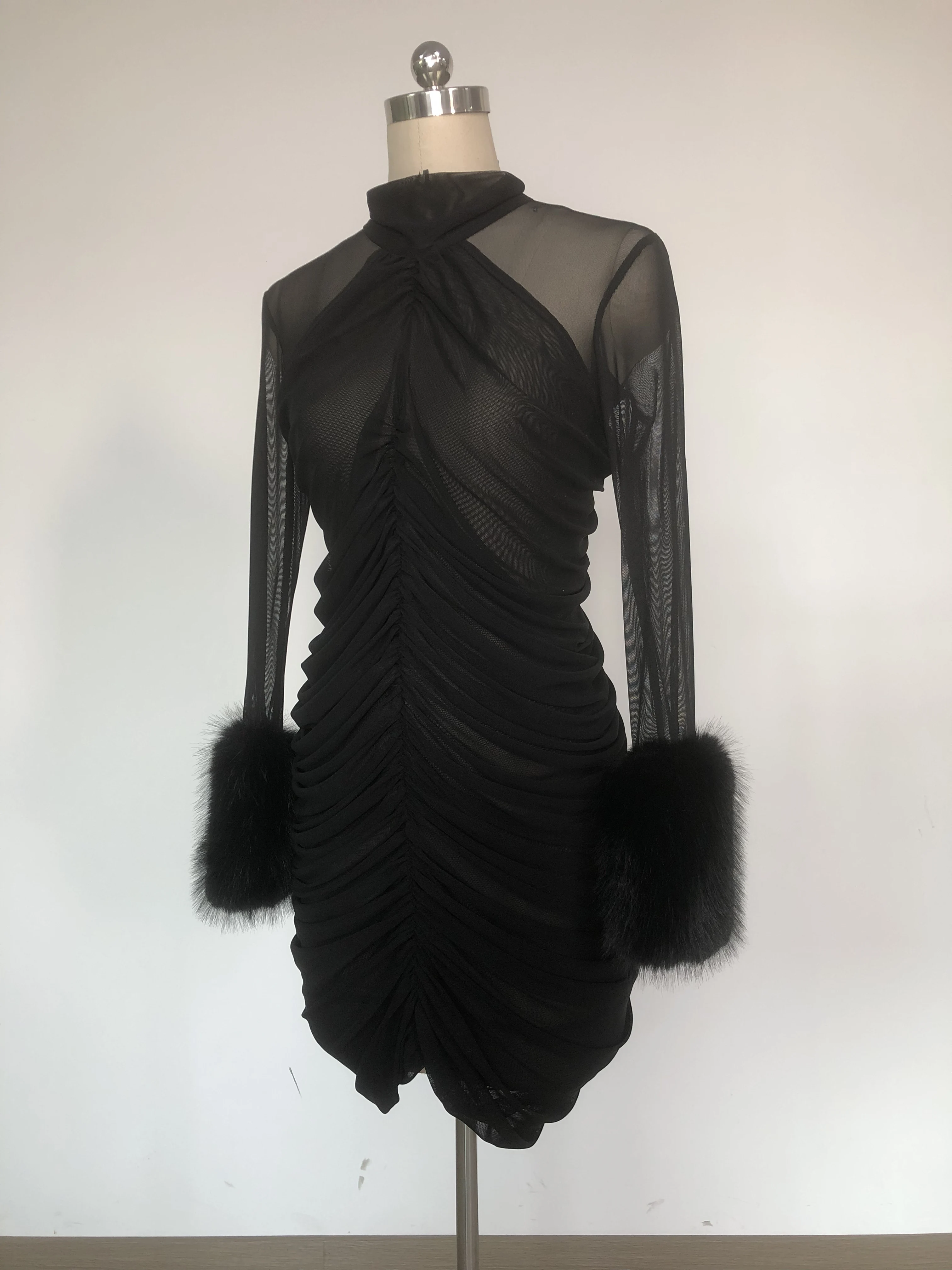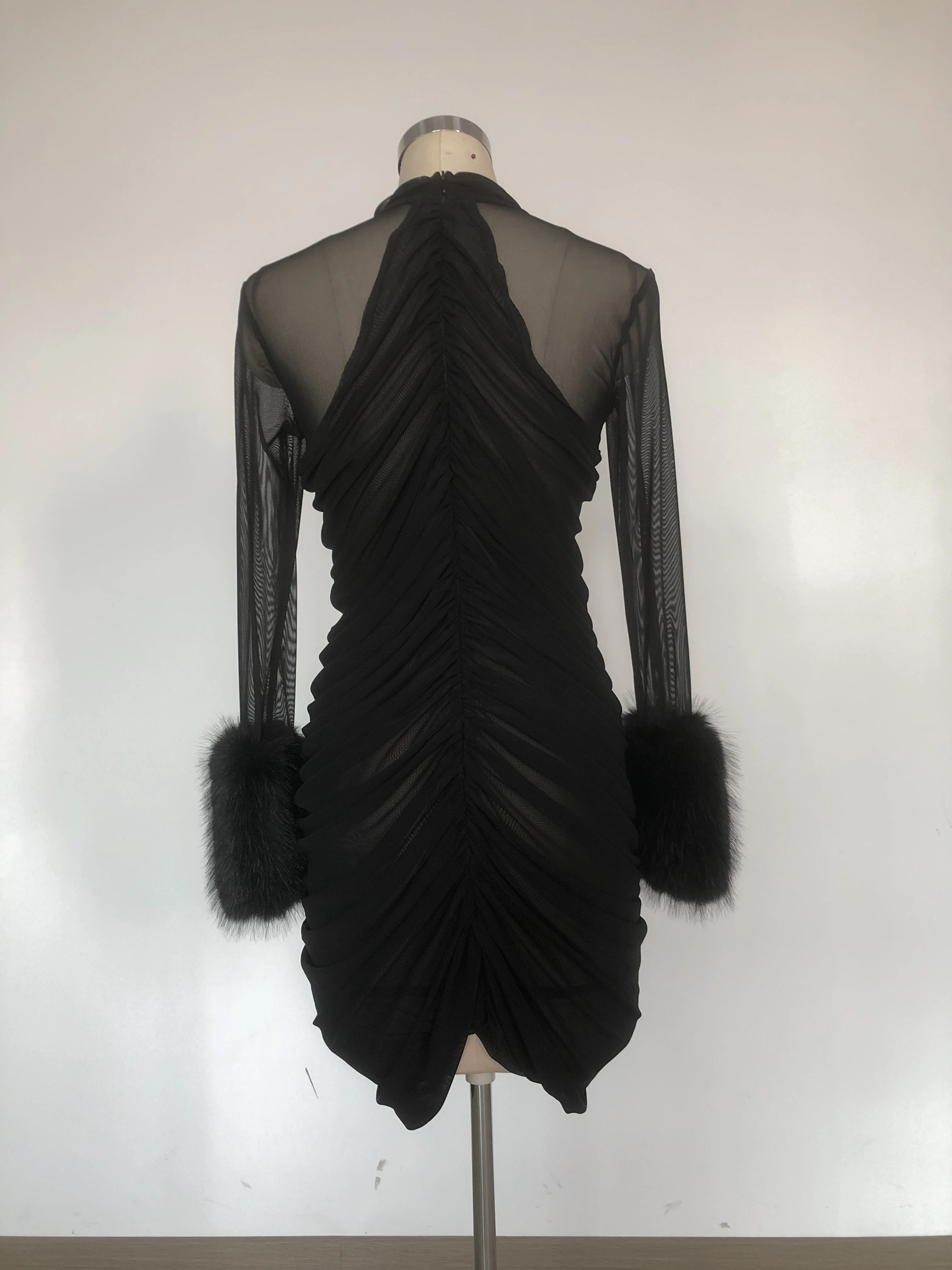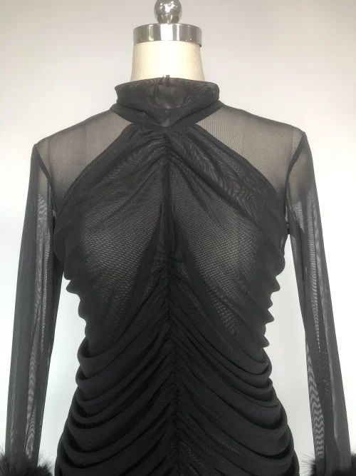 Product Name: LS2600 New Spring Summer Long Sleeve Ruffle Dress Birthday Dresses Women Fashion Feather Dress