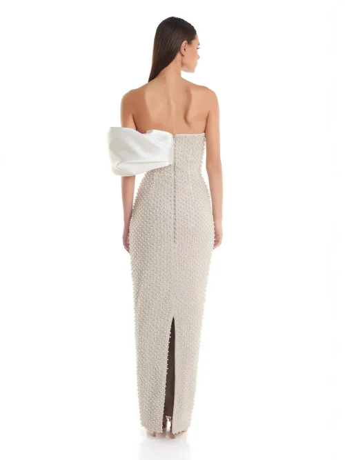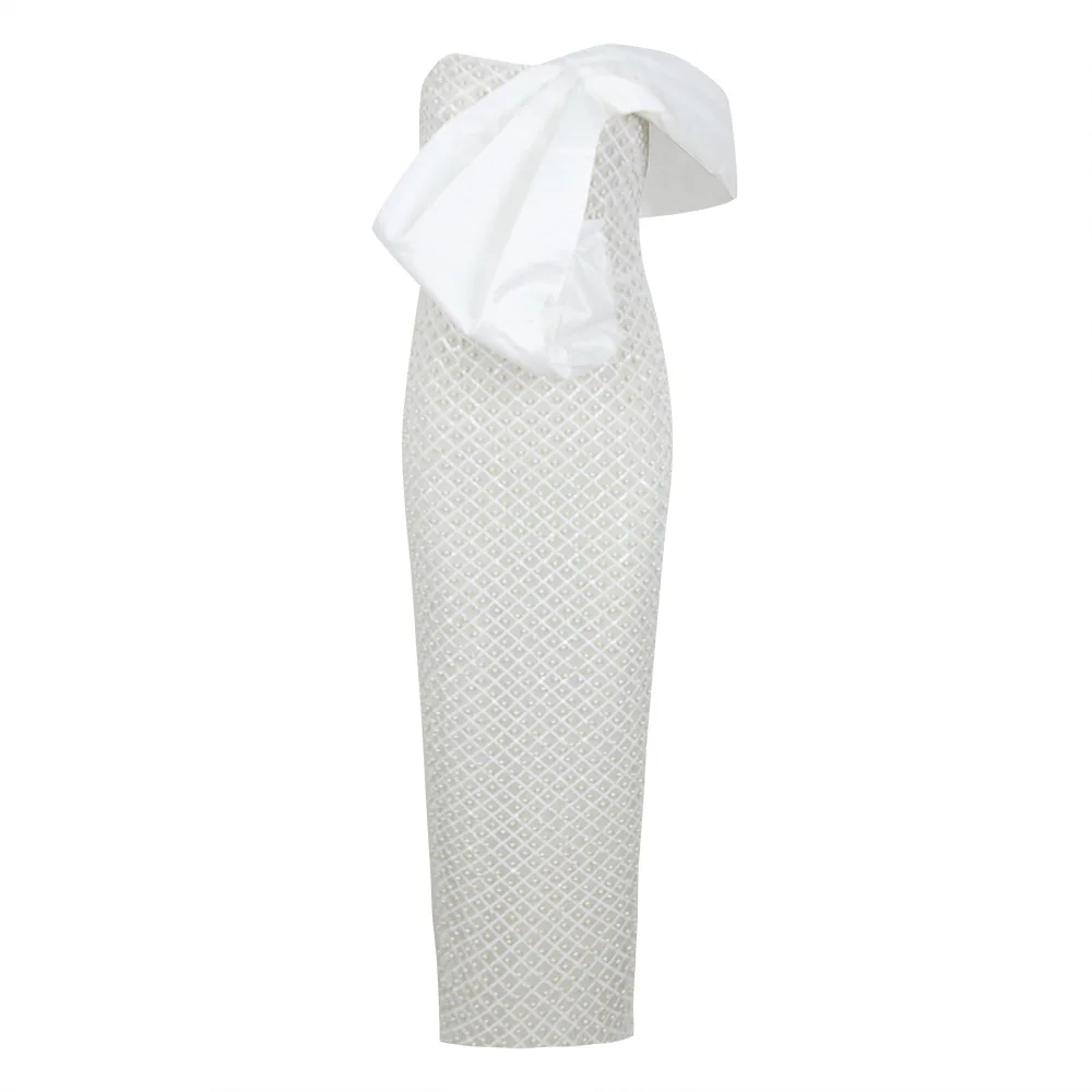 Product Name: Luxury Elegant Beading Bow Pearls Sequin Tulle Long Women Casual Dresses Evening Dress