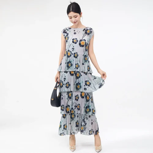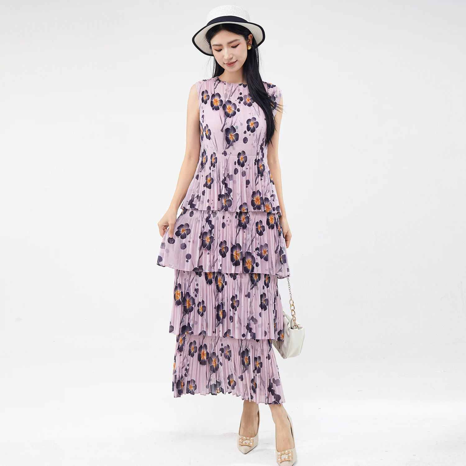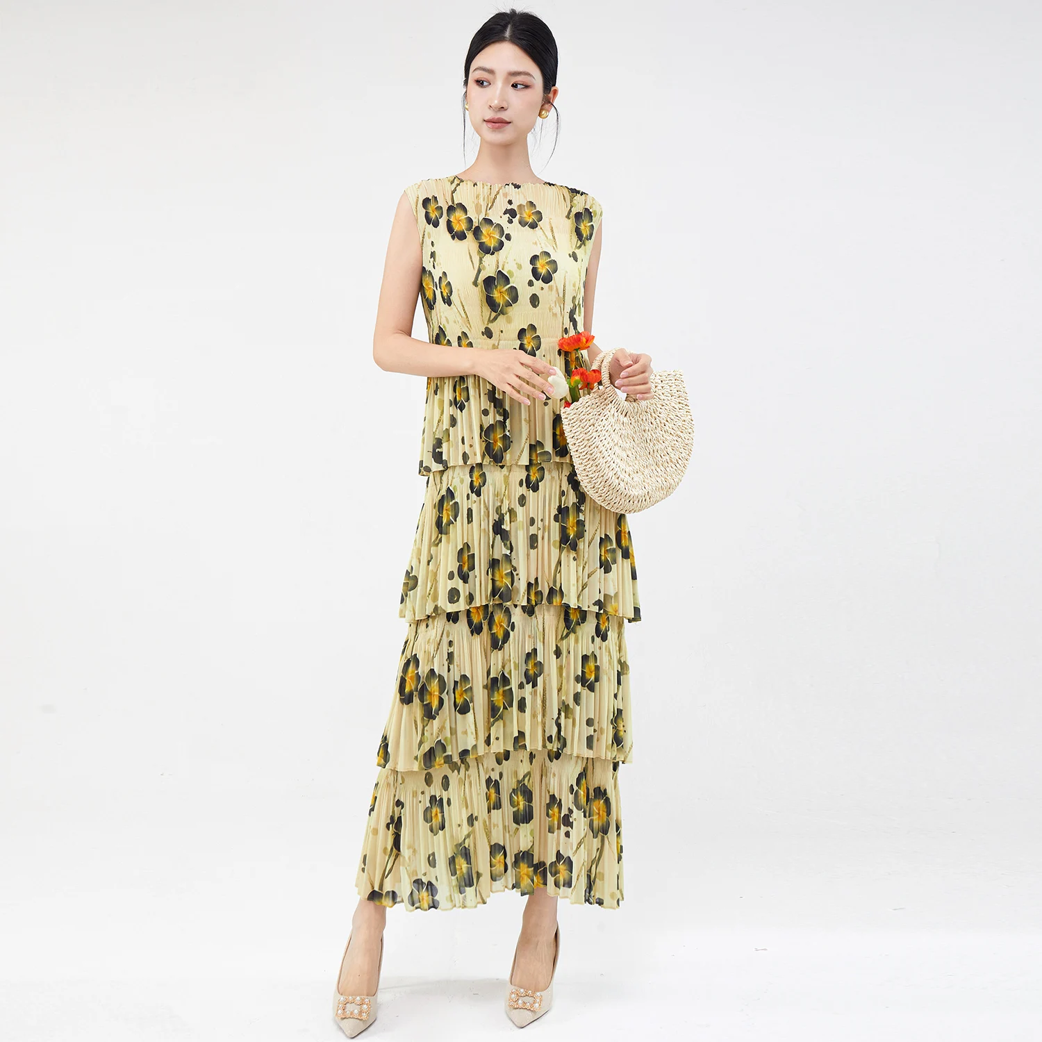 Product Name: Luxury High end Dress 2025 Summer Latest Sleeves Fashion Printed Sleeveless Elegant Cake Dress Ladies Clothes Fast Shipping