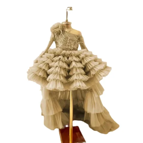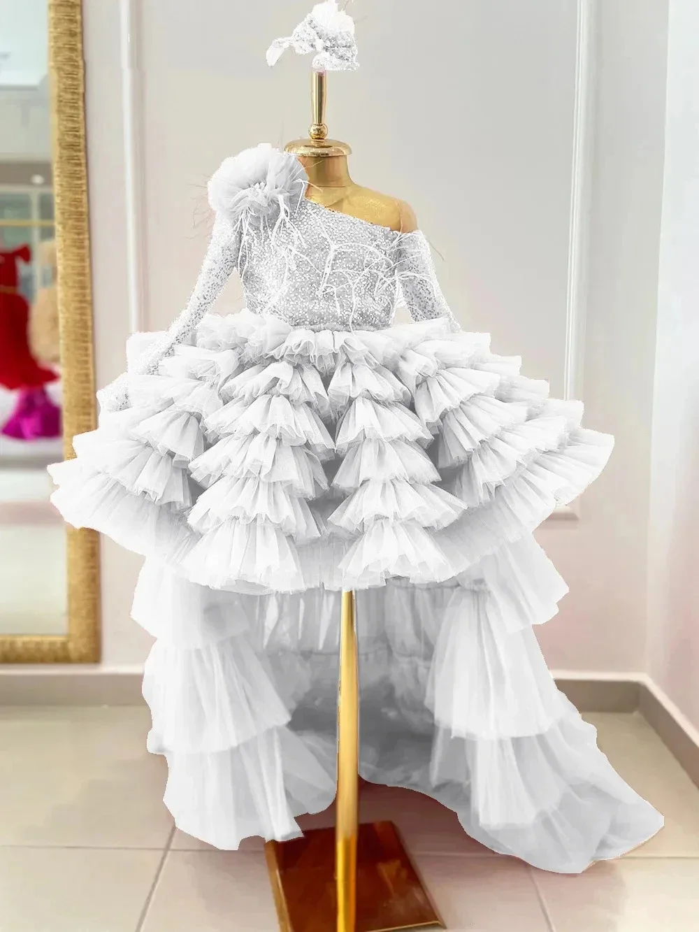 Ma Girl Long Sequin Tutu Party Wedding Cake Dress Girl Bridal Piano Birthday Princess Evening Dress