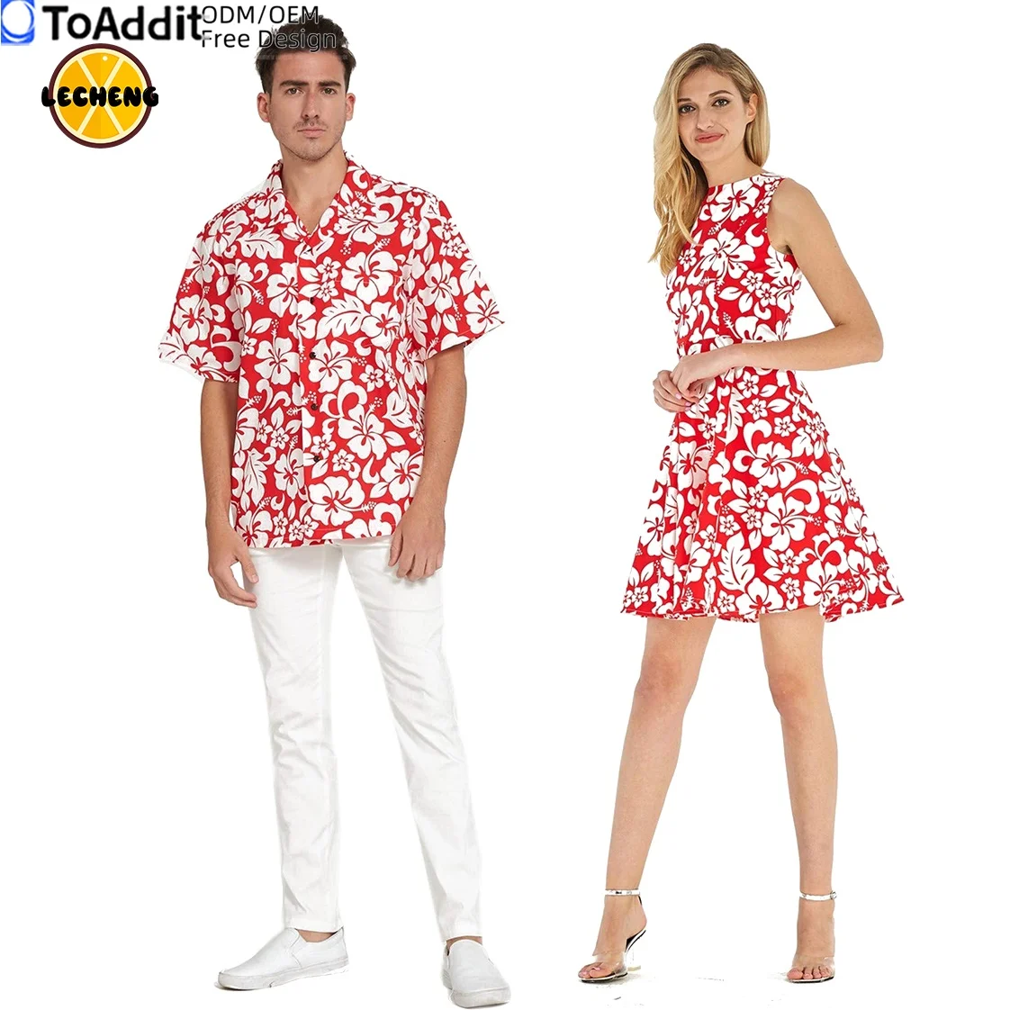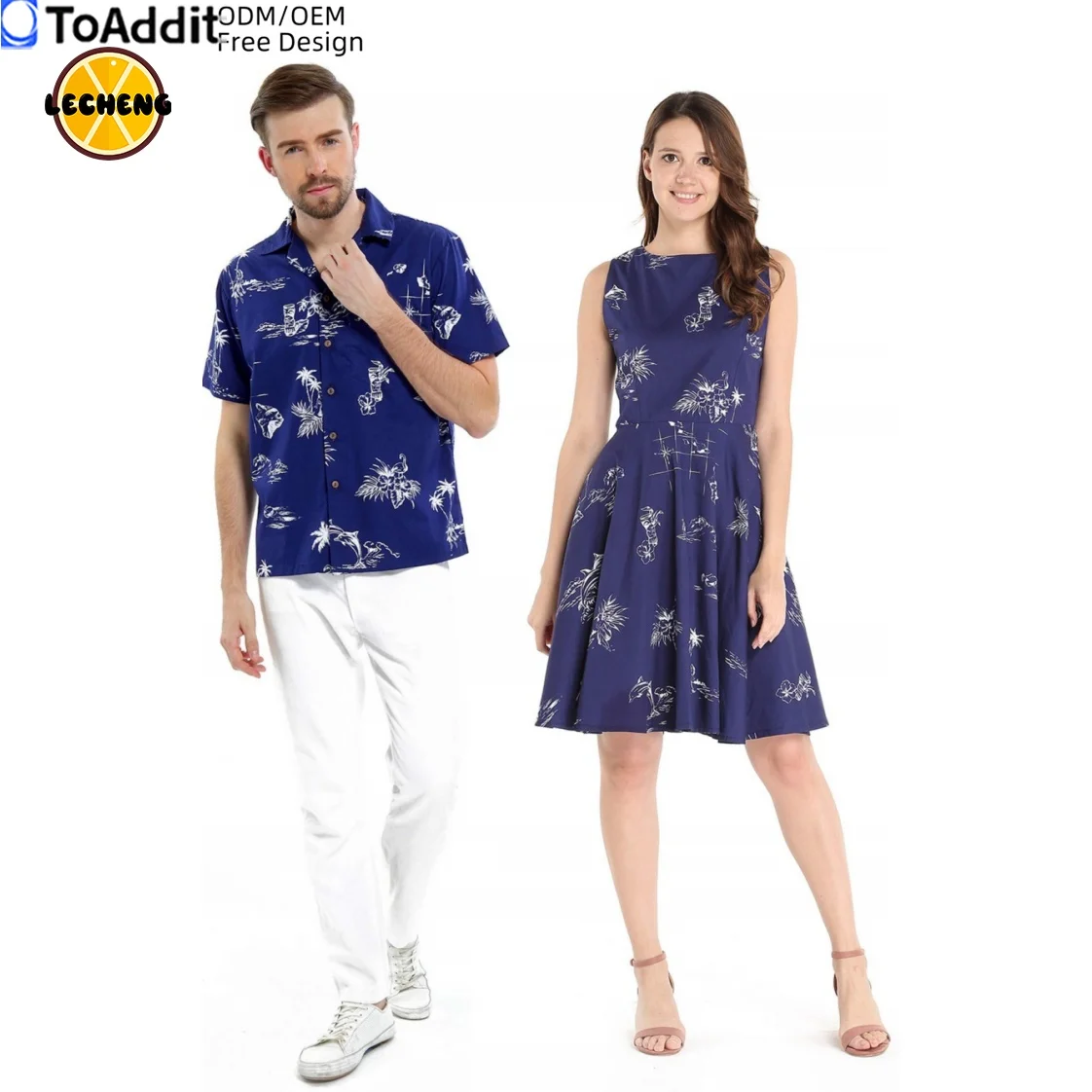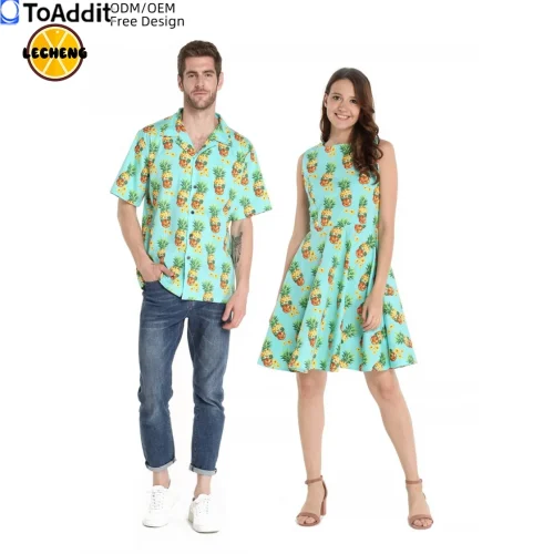 Product Name: Matchable Couple Hawaiian Luau Men’s Shirts and Women’s Vintage Fit and Flare Sundresses Polynesian Matching Outfits
