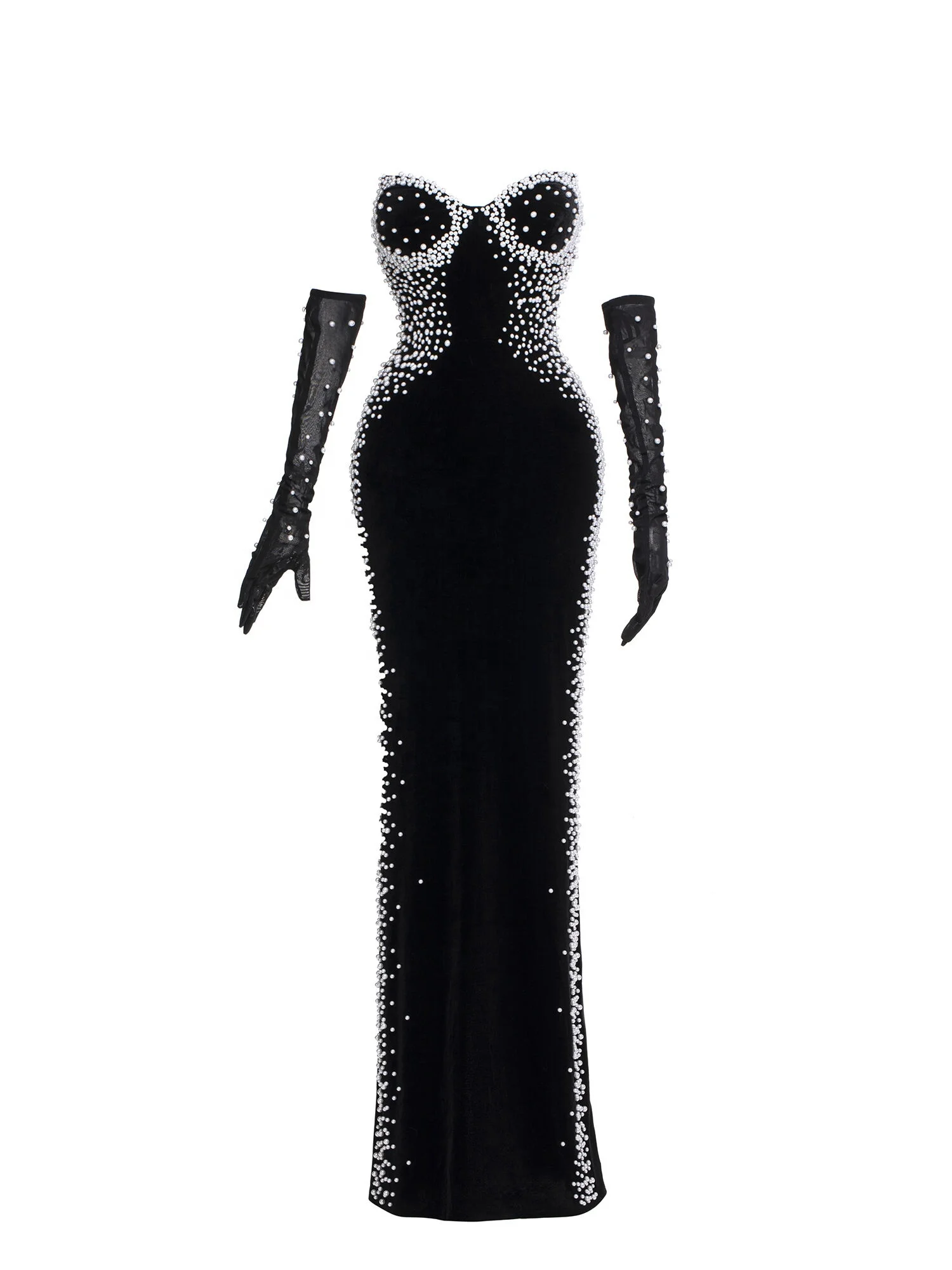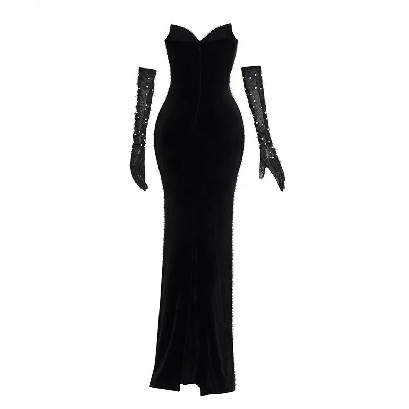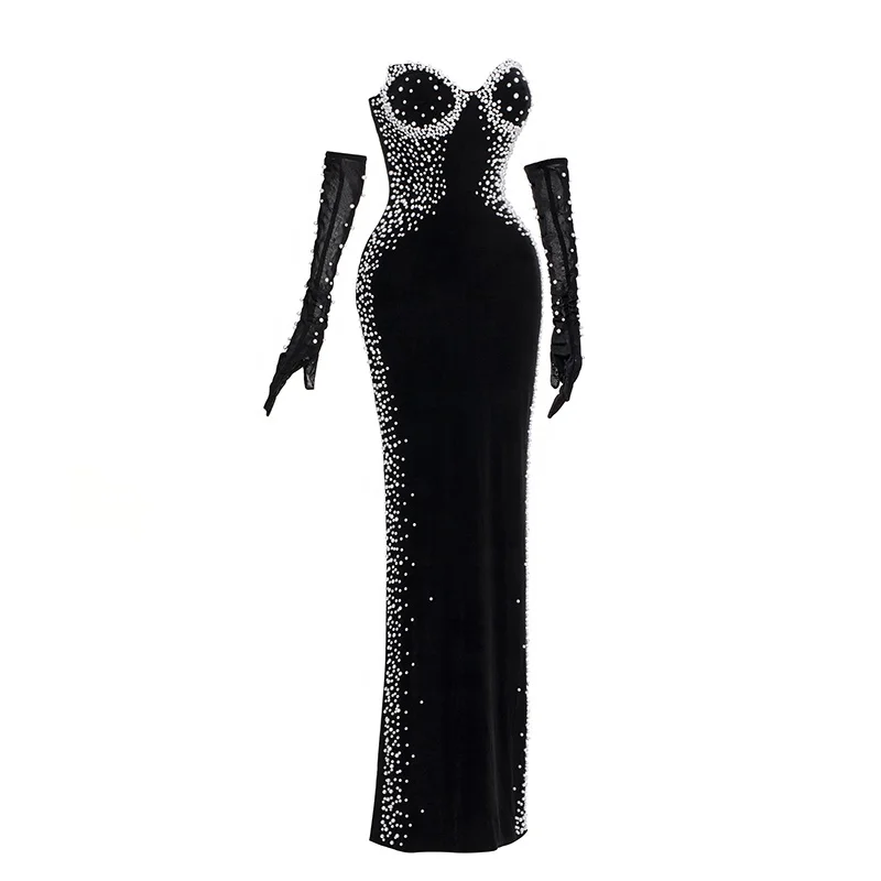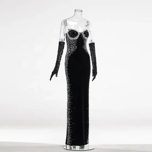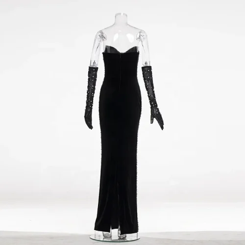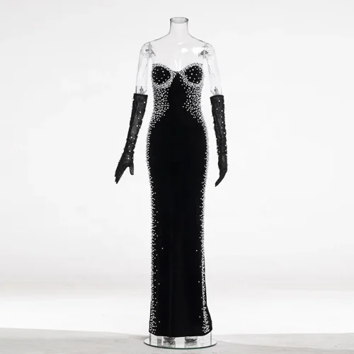 Product Name: Mermaid Floor-Length Off-the-shoulder Beaded Sexy Embellished Evening Gown Coral Luxurious Club Prom Trendy Evening Dress