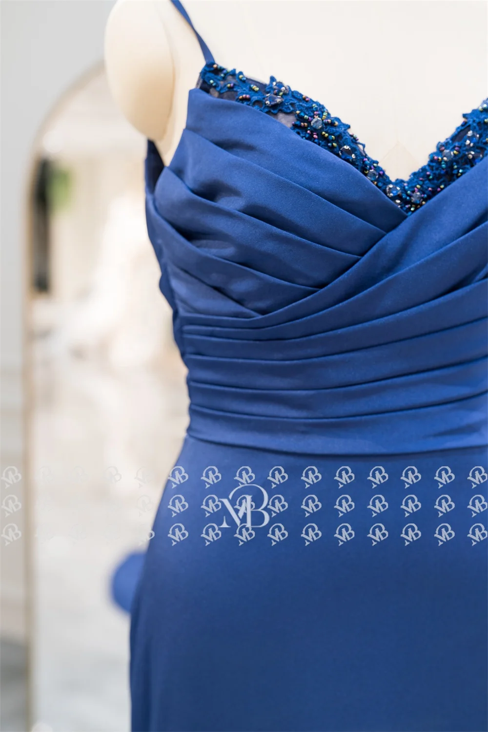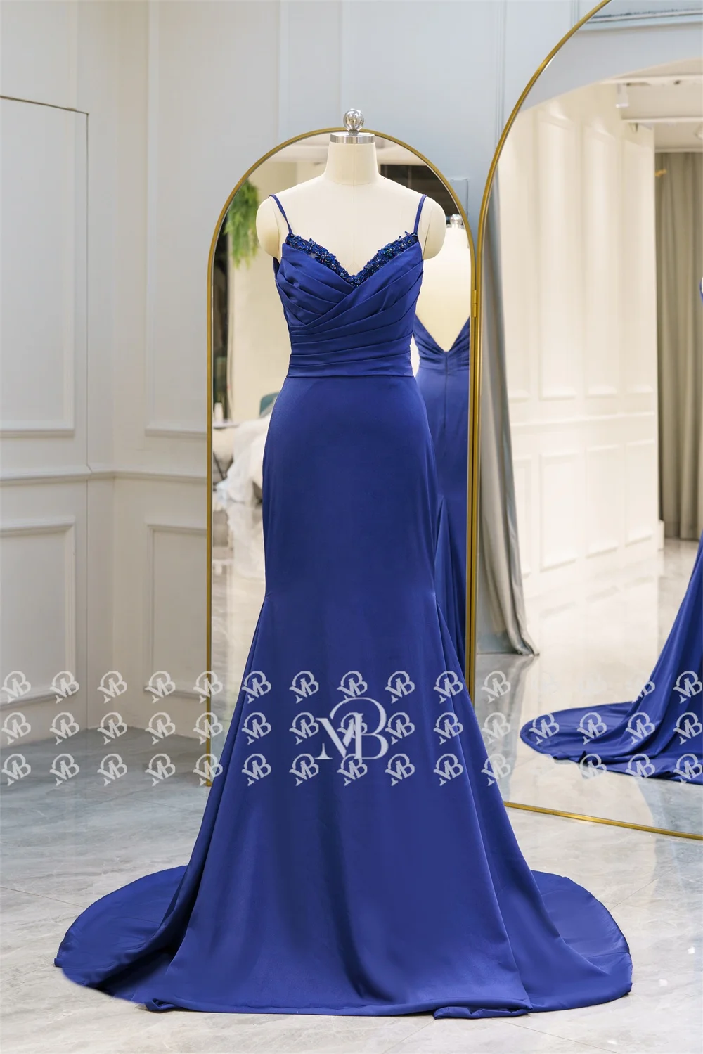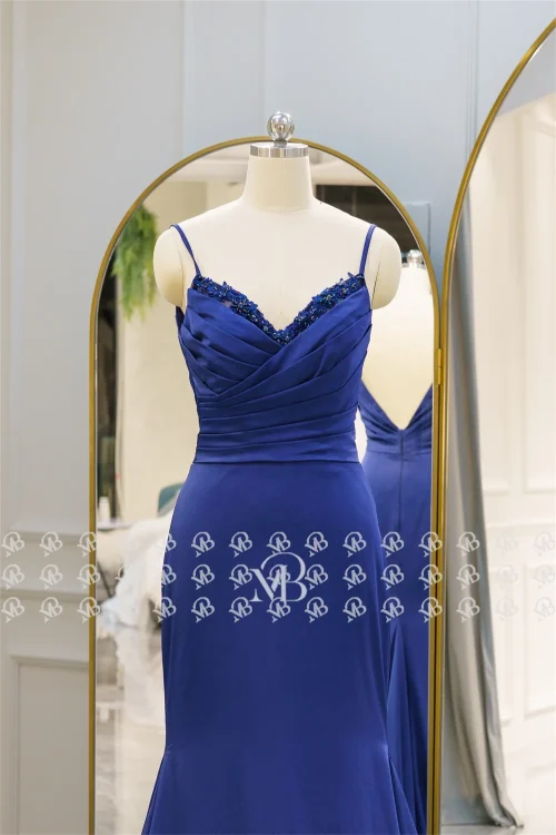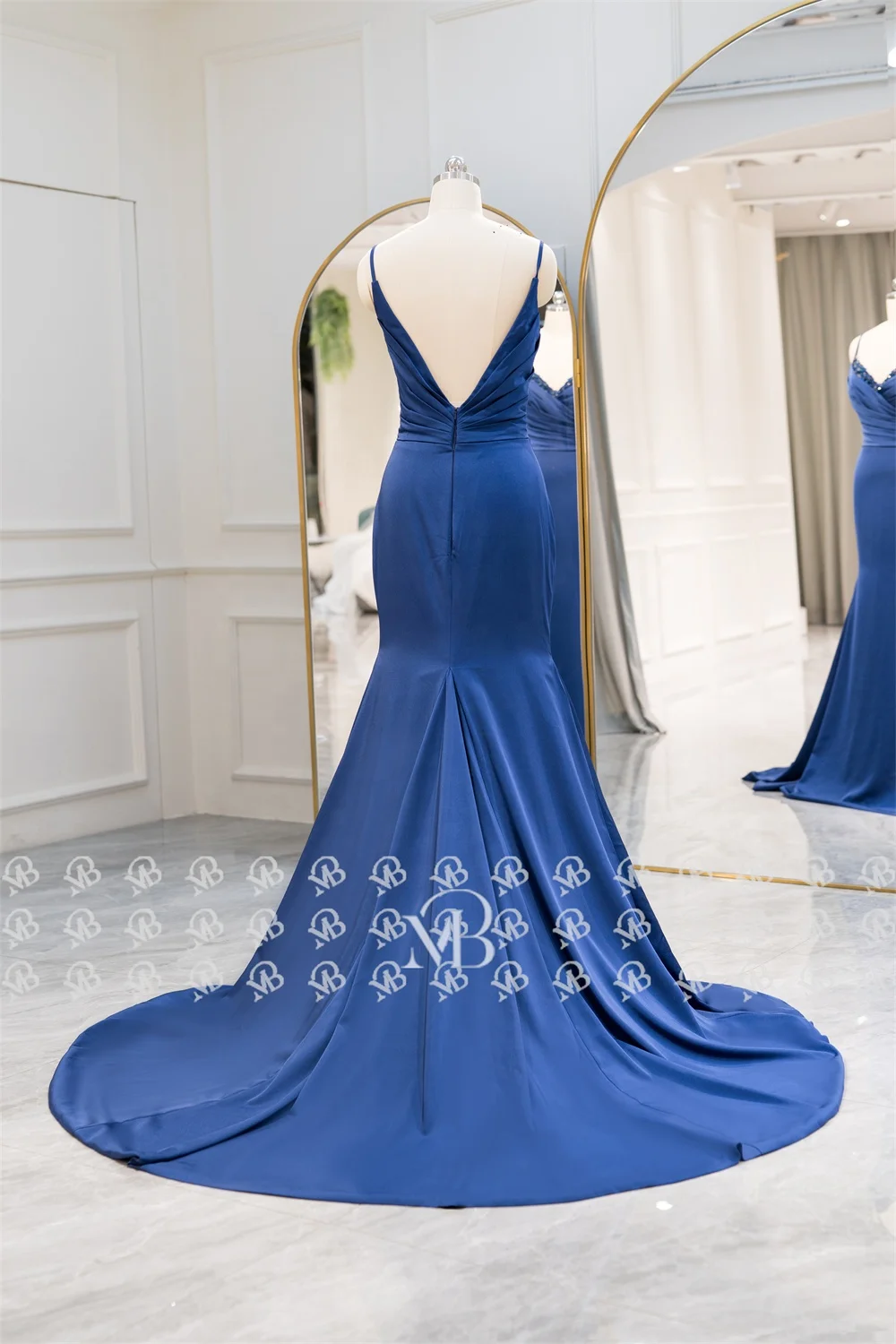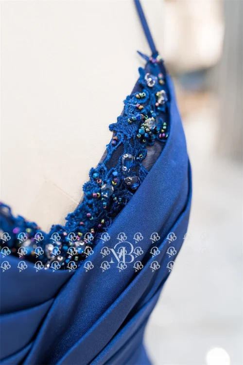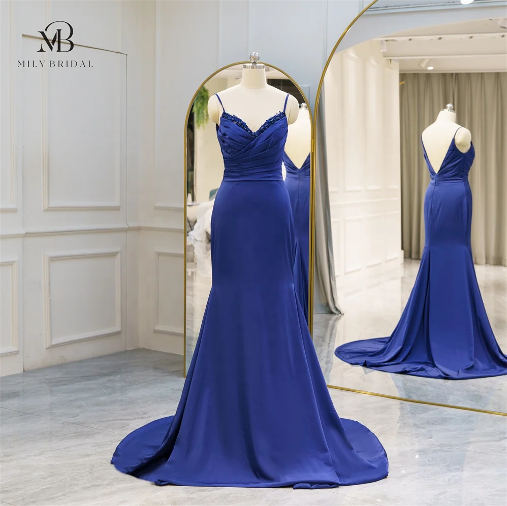 Product Name: Mily Bridal LDC6632 Spaghetti Strap Sexy Beaded Work Laced Evening Gowns for Women Mermaid Sexy Blue Backless Party Dresses