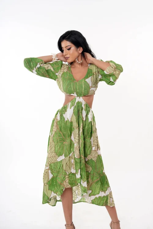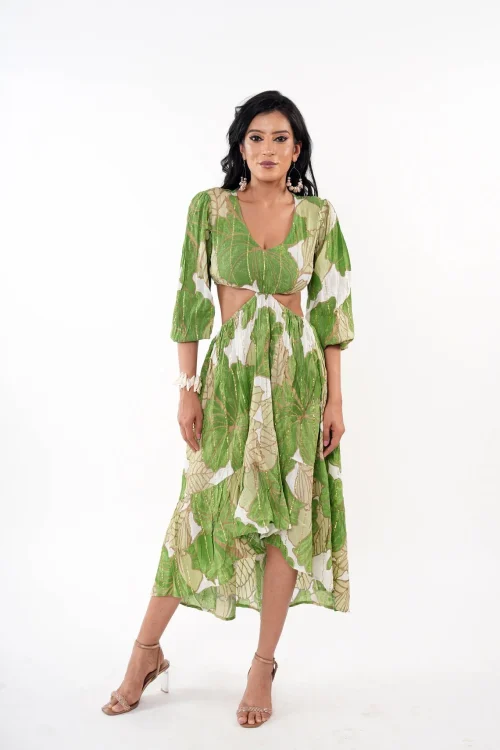 Product Name: Modern High Quality Womens Printed Georgette Maxi Dress Vintage Style Beach Wear with on Back