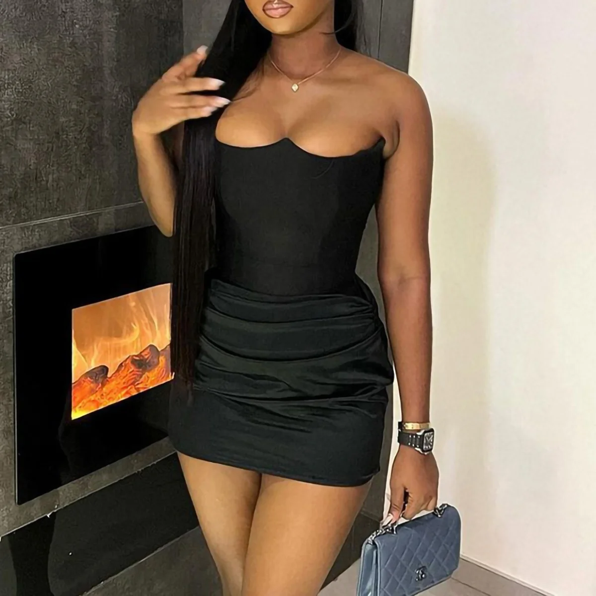 Product Name: Modest Sexy Ladies Dresses Nightclub Satin Fishbone Strapless Patchwork Strapless Corset Bodycon Mini Dress