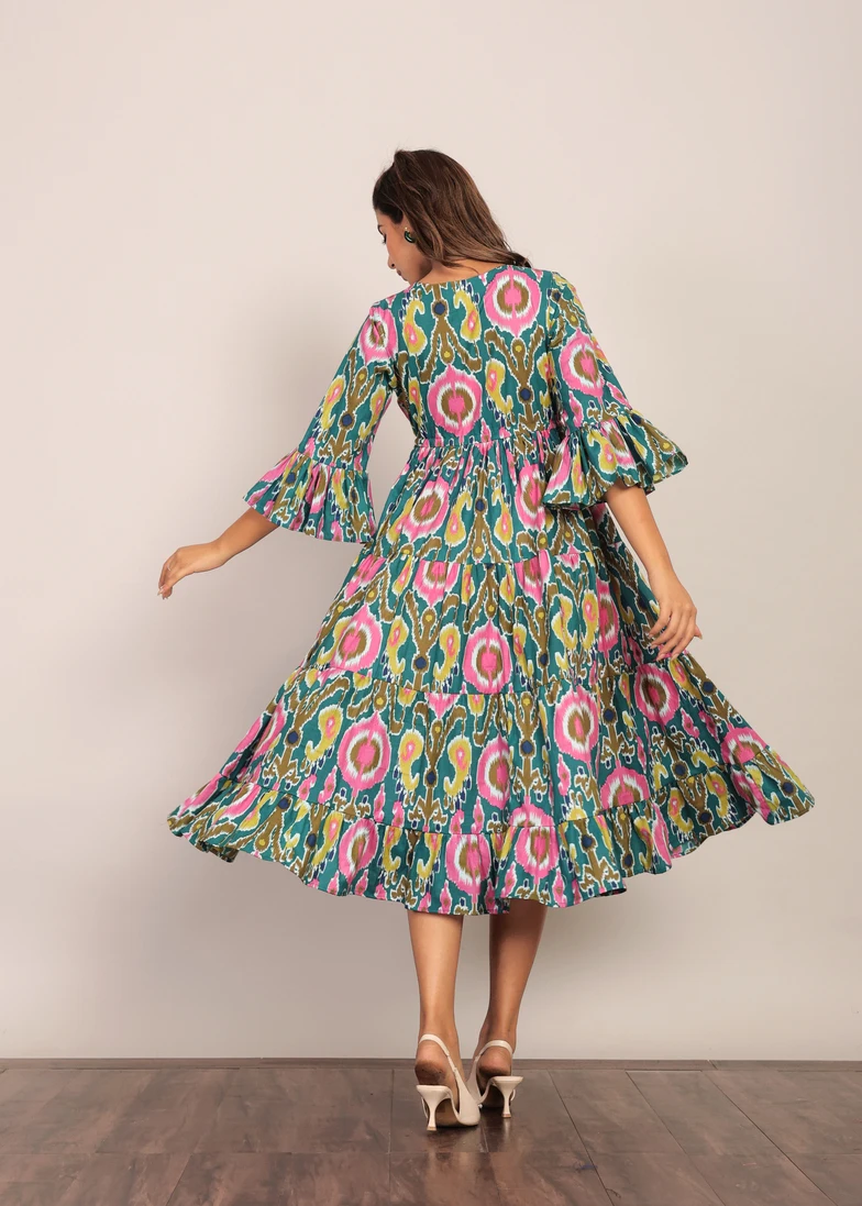 Product Name: Multicolor Floral Printed Midi Dress Beautiful Dress for Women Fancy One Piece Available at Affordable Price by Manufacturer