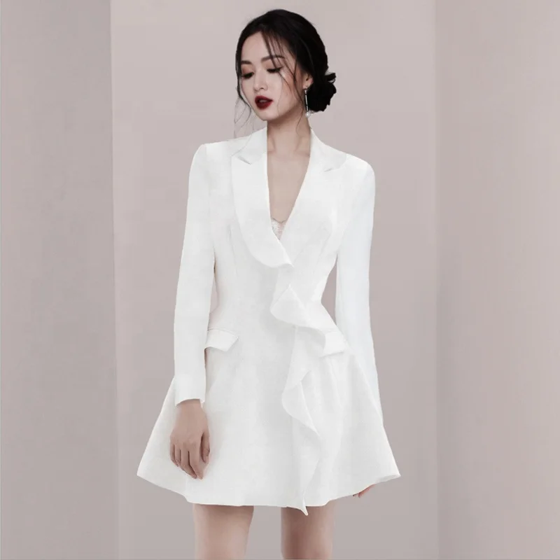 Product Name: MZ19615 Best Quality Professional Ladies Sexy Ruffle Women Formal Dresses Lady Elegant Dress Office Wear