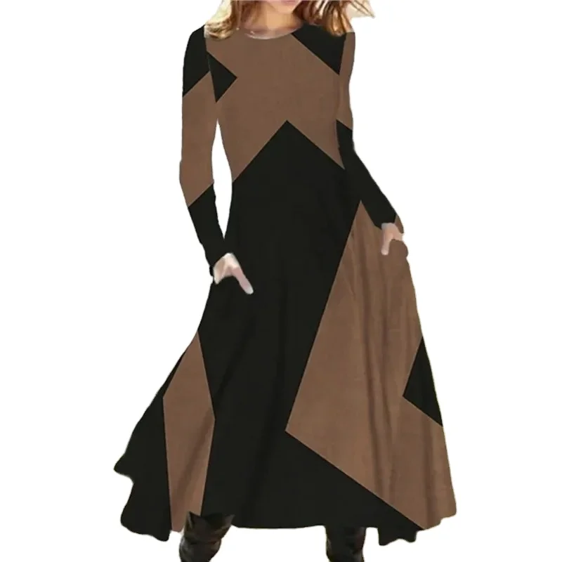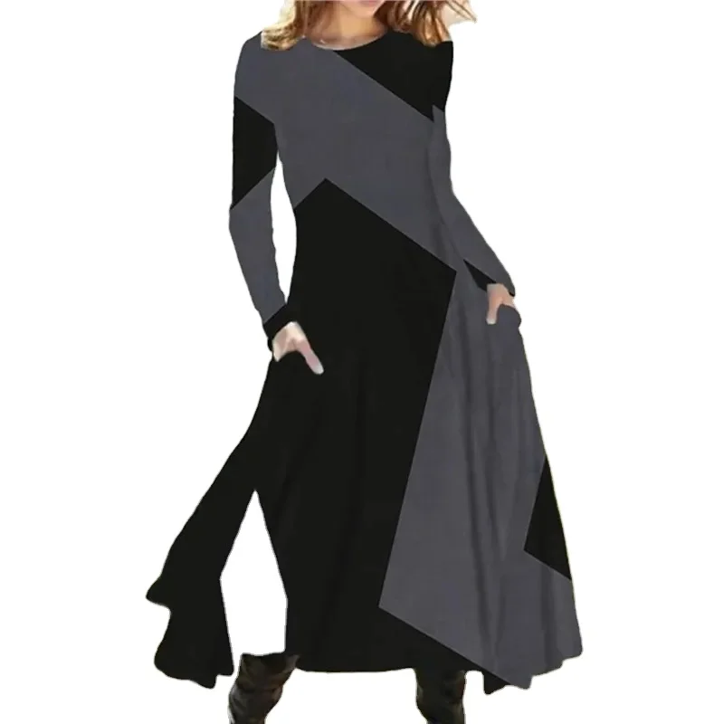 Product Name: New 2024 Women’s Casual Elegant Party Dress Contrast Color Ladies Spring Autumn Loose Long Sleeve Dress With Pockets Midi Dress