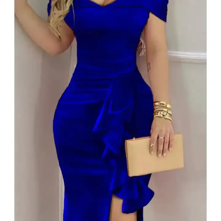 Product Name: New 2025 Split Ruffle Velvet Prom Dress Luxury Party Club Corset Ball Gown for Women Velour Summer Evening Dresses