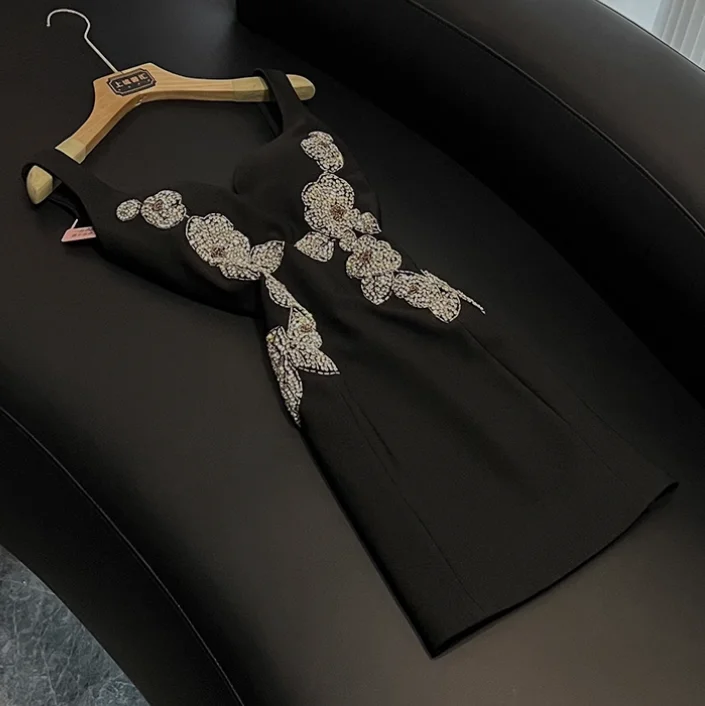 Product Name: New Arrival French Style Lady Formal Wear Sweetheart Collar Sleeveless Fine Workmanship Beading Women Short Mini Slim Dress