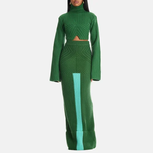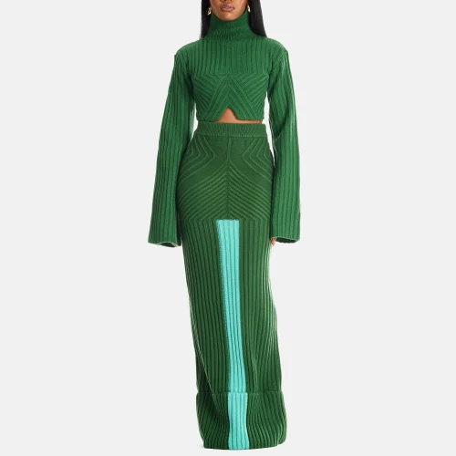 Product Name: New Arrival High Quality Women Knit Set Cropped Turtleneck Sweater and Knit Maxi Dress Two Piece Set