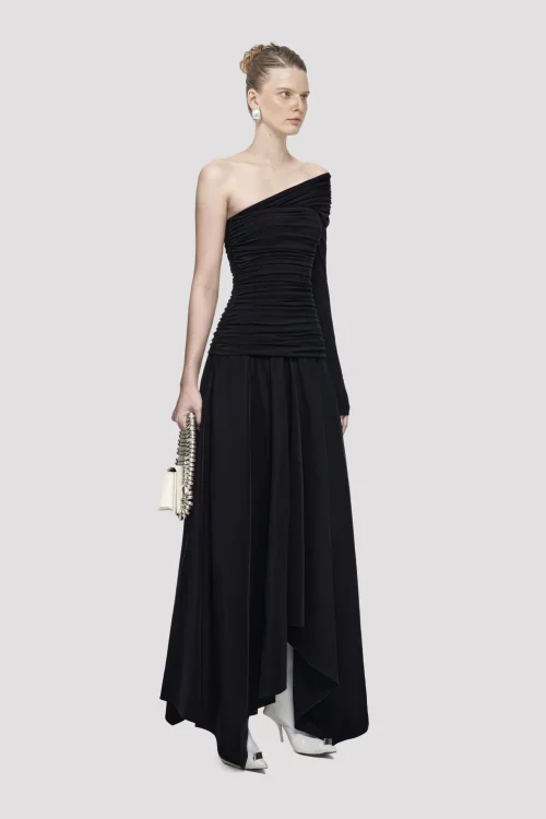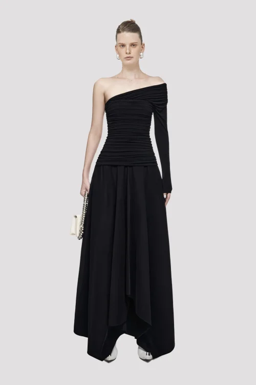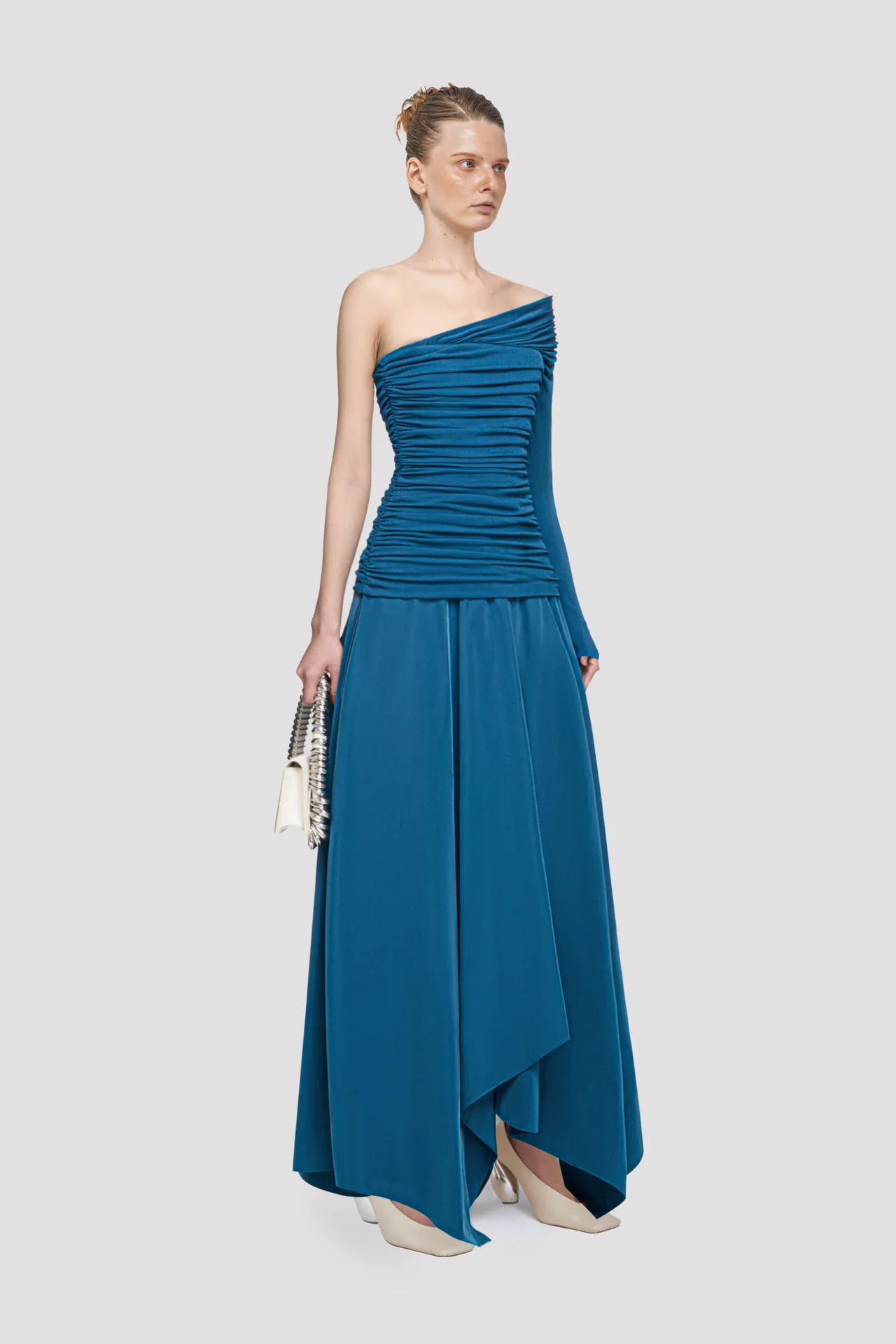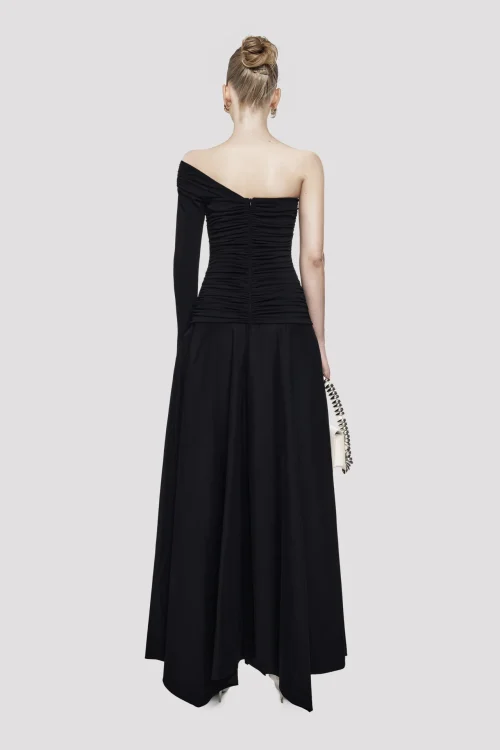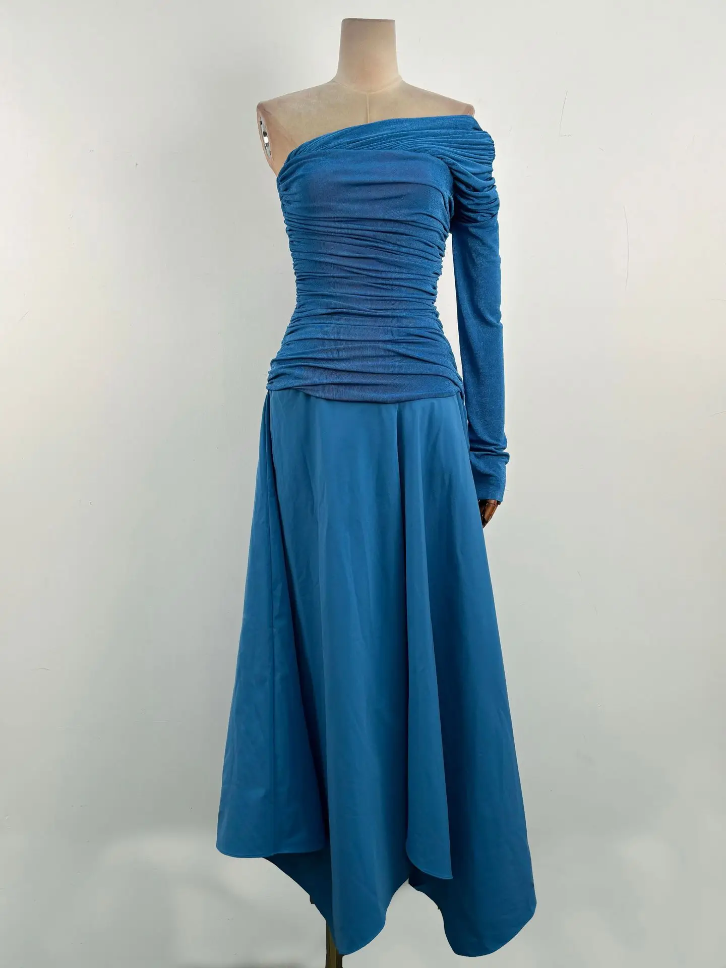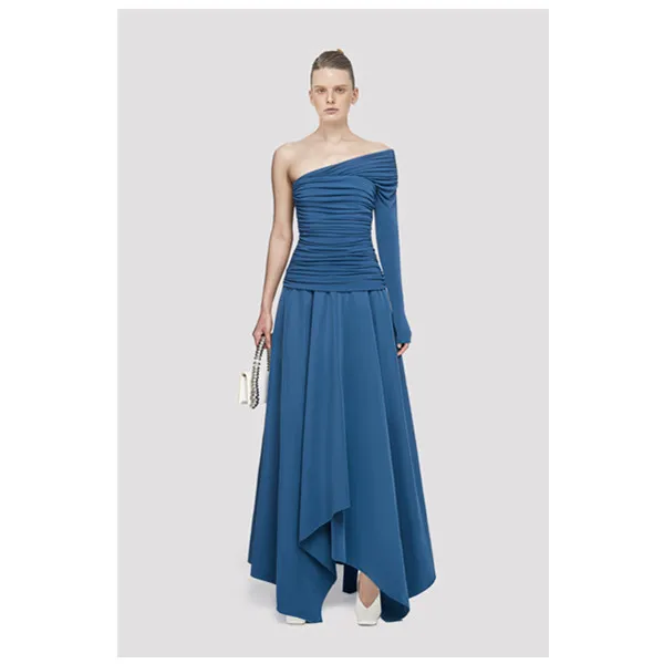 Product Name: New arrival one-shoulder pleated dress fashion solid color long dress plunging neckline ladies dresses